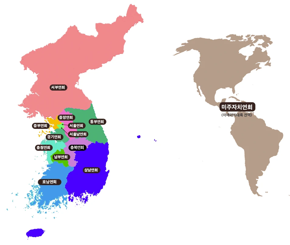 각 연회마다 지역별로 12개~30개 이하의 지방이 있습니다. 감리사는 지방회의 사업과 행정을 관할하게 됩니다.
