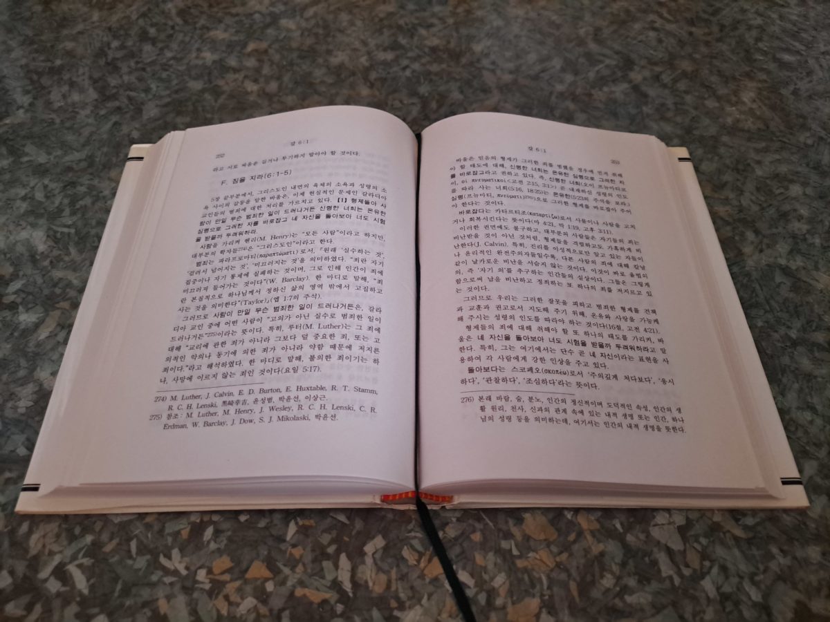 1) M. Luther, J. Calvin, E. D. Burton, E. Huxtable, R. T. Stamm, R. C. H. Lenski, 黑崎幸吉, 윤성범, 박윤선, 이상근.