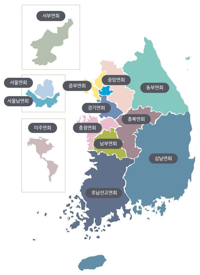 지역별 소속연회 배치도를 그림으로 제공하오니 필요하신 분은 활용하시기 바랍니다.