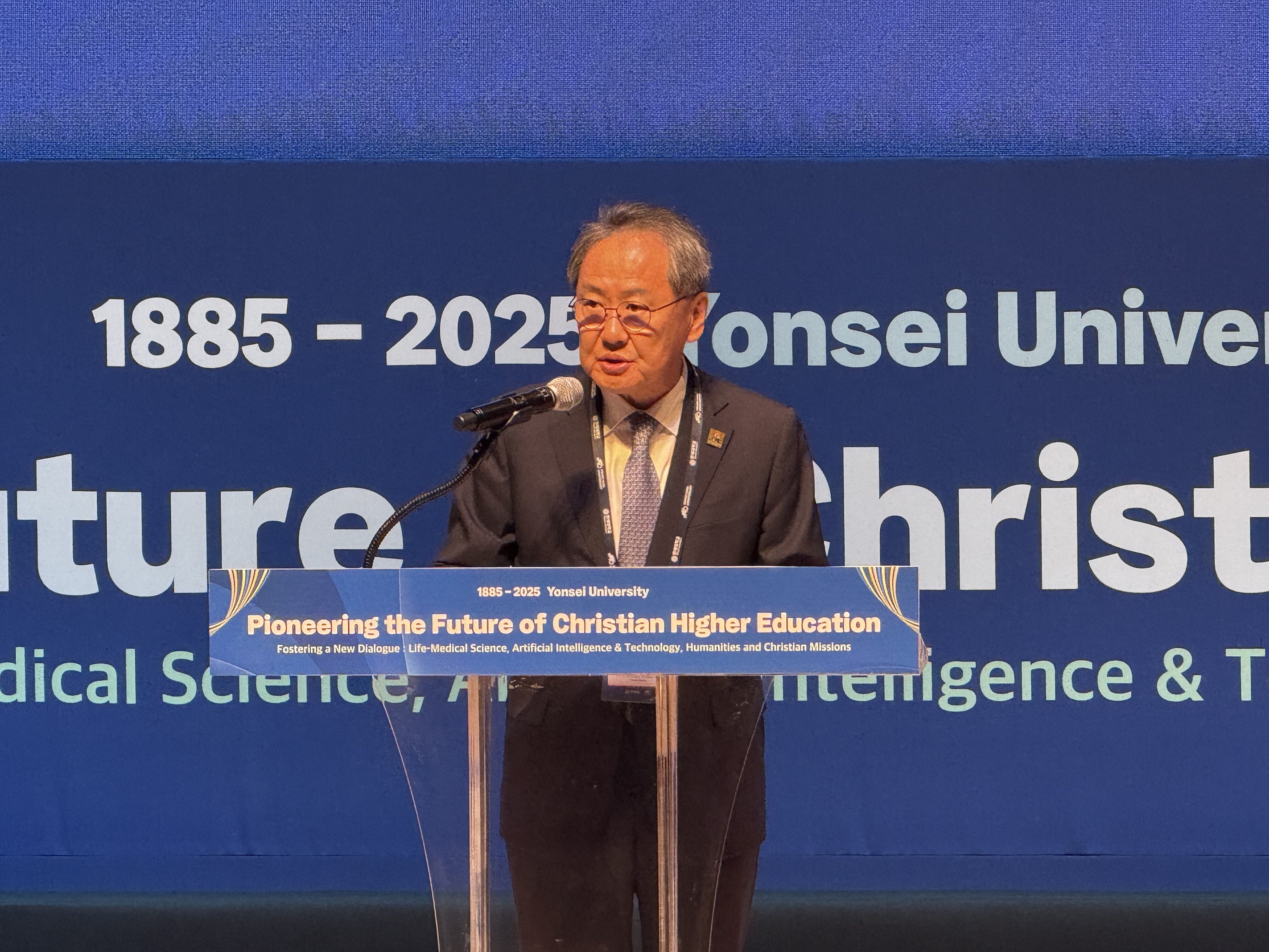 김정석 감독회장, 연세대 140주년 행사에서 영어로 기조연설해