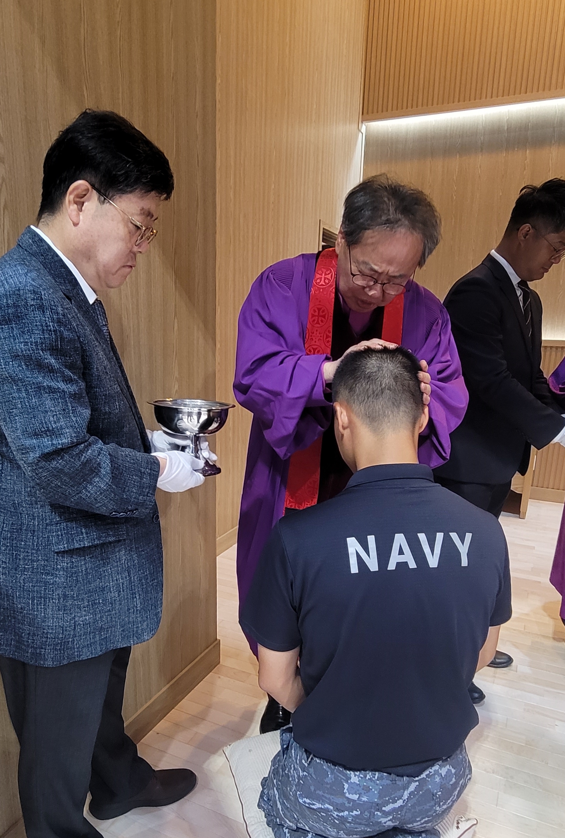 김정석 감독회장, 감독들과 함께 해군 교육사령부 진중세례 베풀어