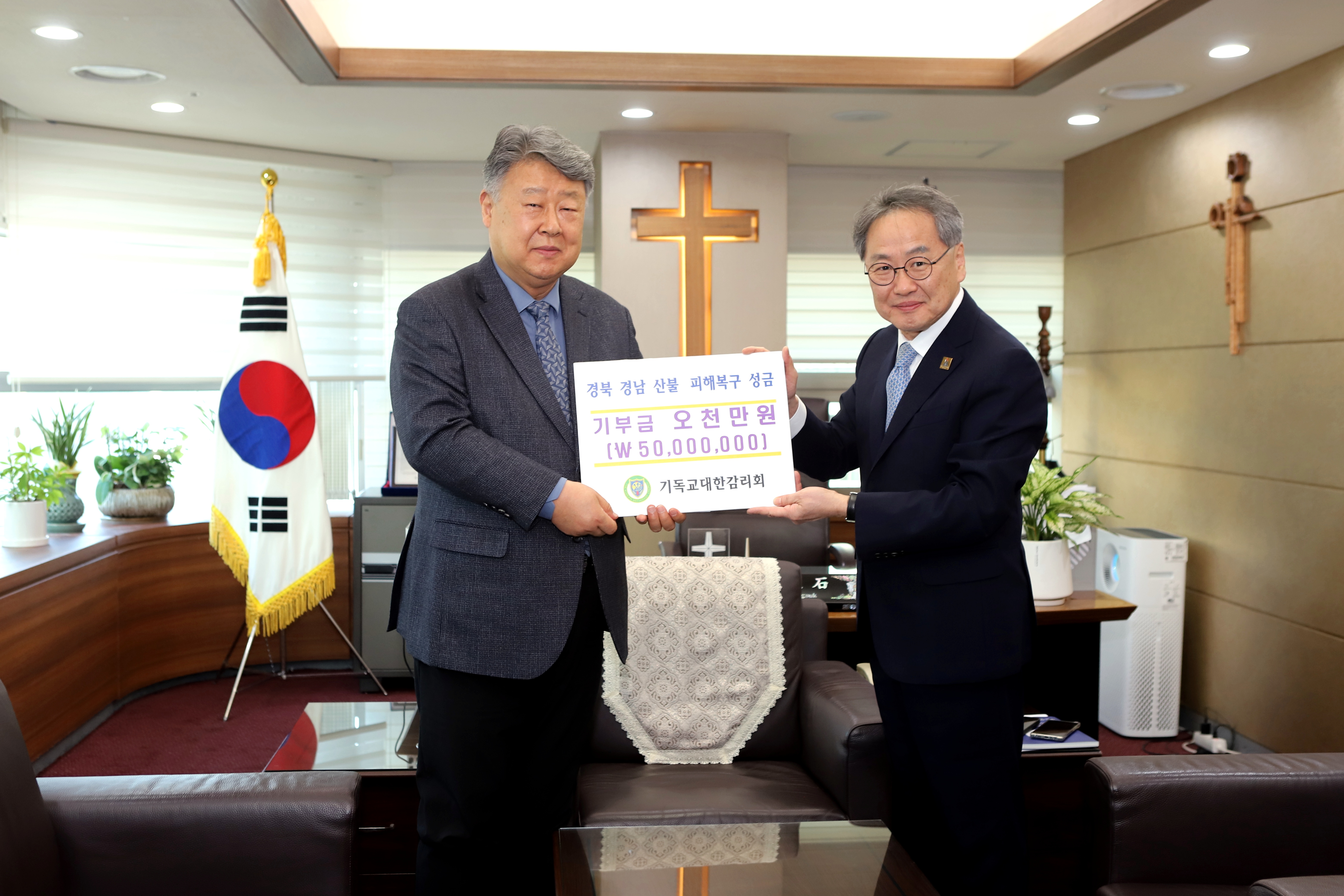 김정석 감독회장, 예장통합∙예장합동에 산불 피해 복구 성금 5천만 원씩 전달해