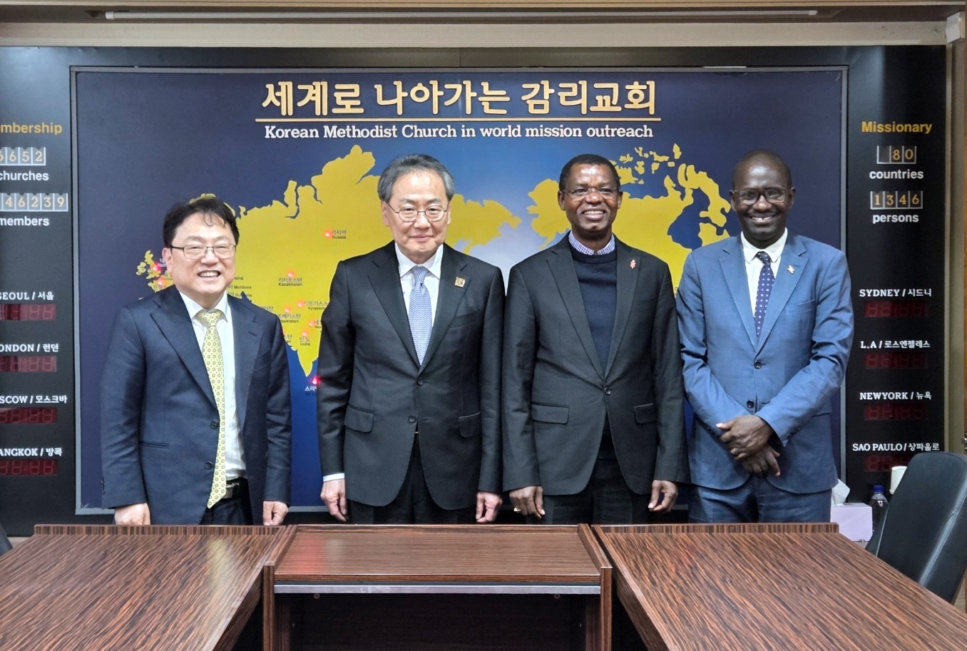 기독교대한감리회 김정석 감독회장의 ‘감리회 위상 높이기’가 계속되고 있다. 김 감독회장은 지난 4월 14일(월) 오전, 광화문에 위치한 감리회 본부를 찾은 부룬디 상원의장이자 르완다-부룬디 연합감리교회(UMC) 신호하게라(Emmanuel Sinzohagera) 감독을 만나 양 국가의 선교협력에 관해 논의했다. 이 날의 만남은 오랫동안 부룬디 선교에 열정을 다하고 있는 이성민 목사(강남성은교회/ 전 감신대 교수)가 주선한 것으로, 이성민 목사도 배석했다.