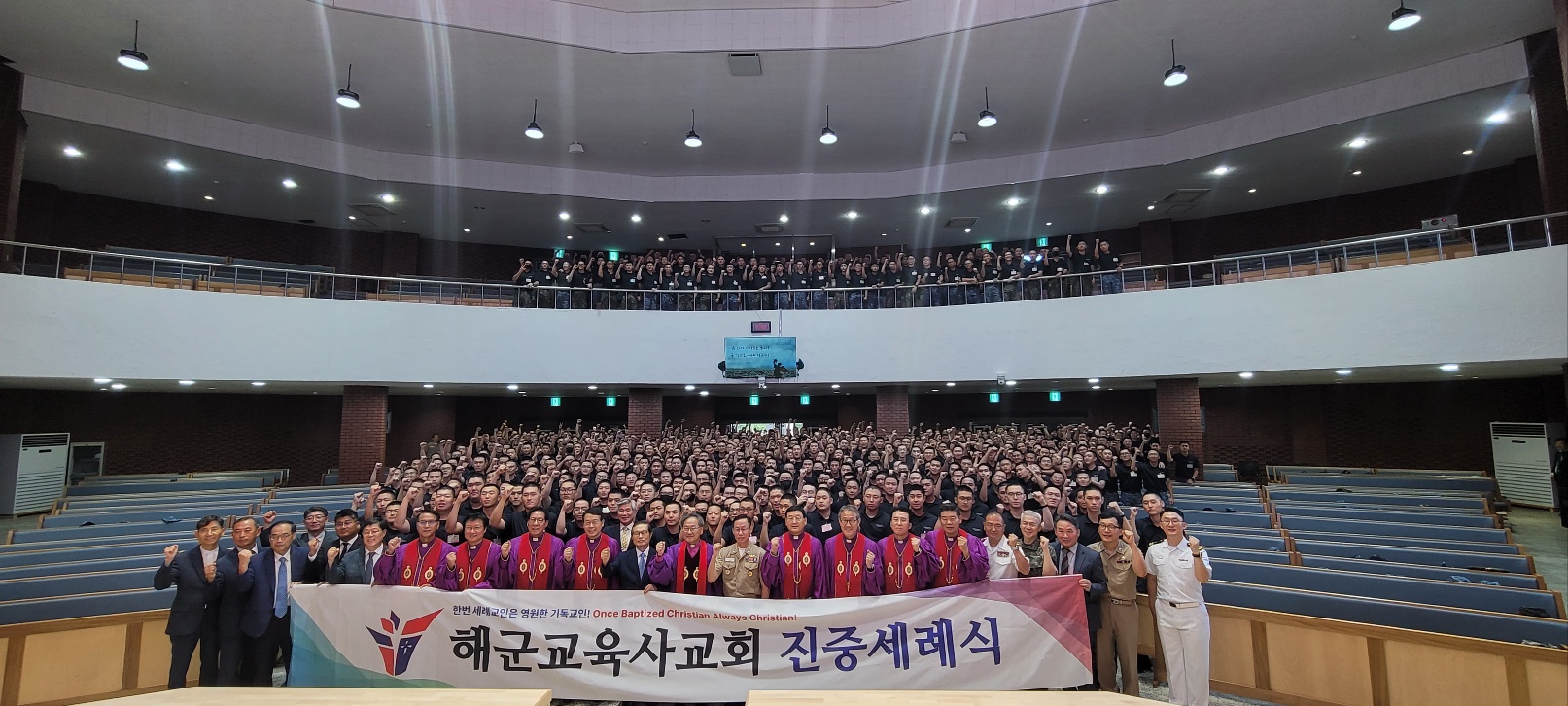김정석 감독회장은 연회 감독들과 함께 지난 7월 30일(수) 경남 진해에 위치한 해군 교육사령부를 방문해 해군병 715기 진중세례식을 베풀었다. 특별히 김정석 감독회장이 소속한 광림교회에서 해군교육사교회의 대형스크린 공사를 위해 1억 원을 후원했고 관련공사를 마친 후 이 날 처음으로 사용했다.