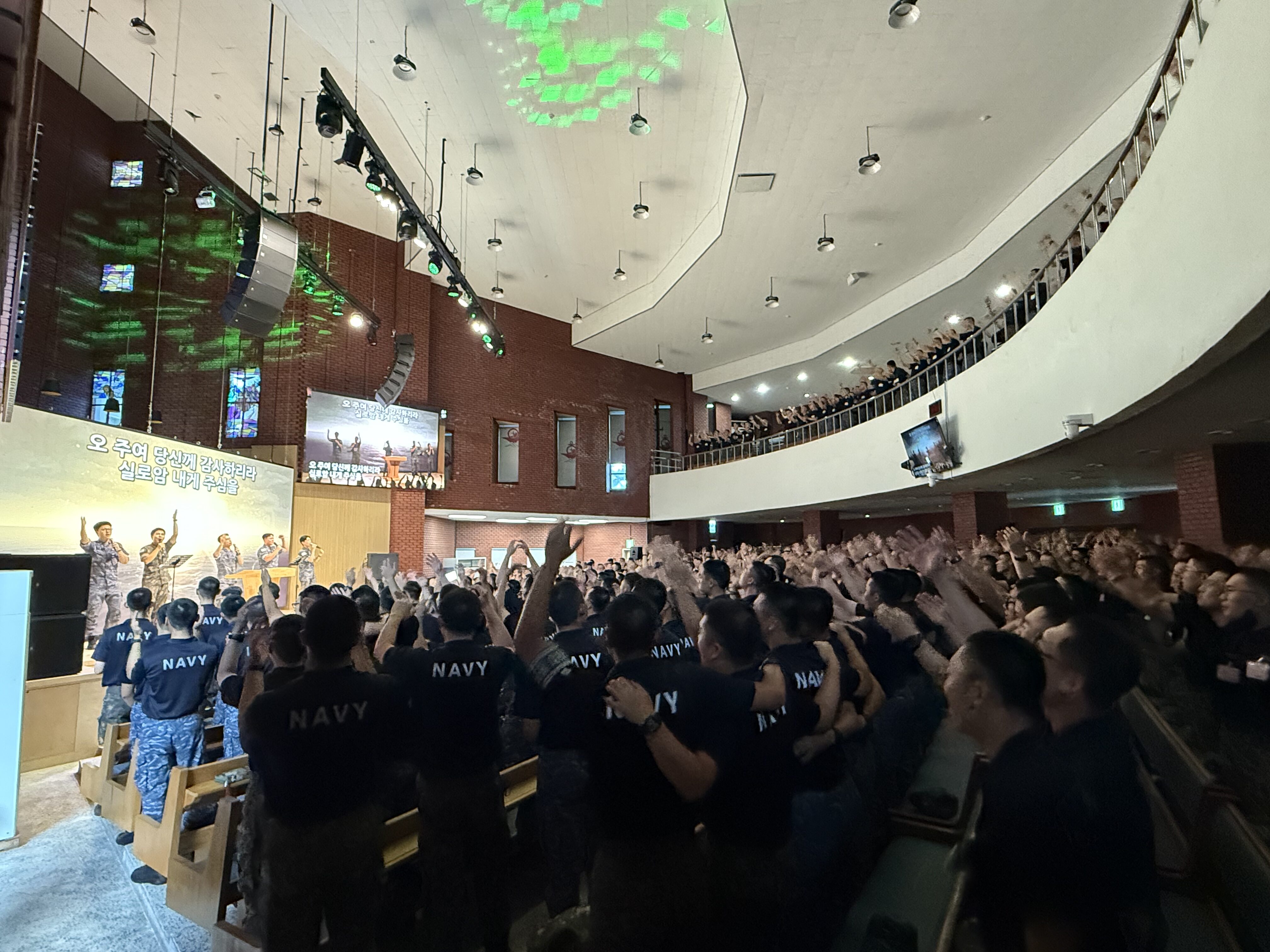 이어 해군소망교회에 들러 성도들이 준비한 이른 저녁식사를 한 후 진중세례식 장소인 해군교육사교회(정희찬 군목)로 이동했다. 오후 5시로 예정된 진중세례식에 참석하기 위해 병사들이 모이기 시작했다. 오후 5시가 되기 전에 이미 1층과 2층의 좌석을 가득 메운 병사들은 병장 강준수 신우가 이끄는 주바라기 찬양단의 리더에 따라 뜨겁게 찬양하기 시작했다.