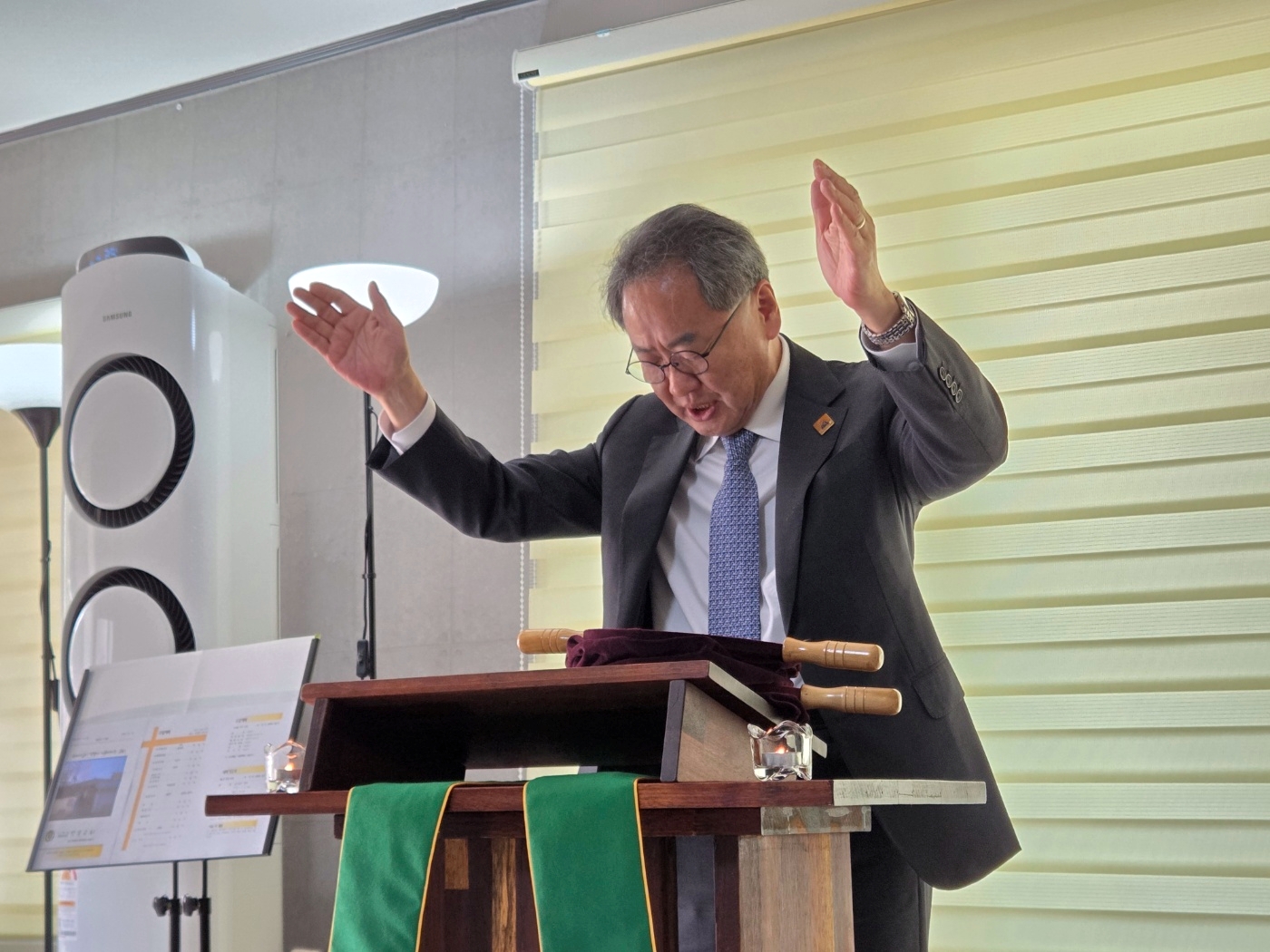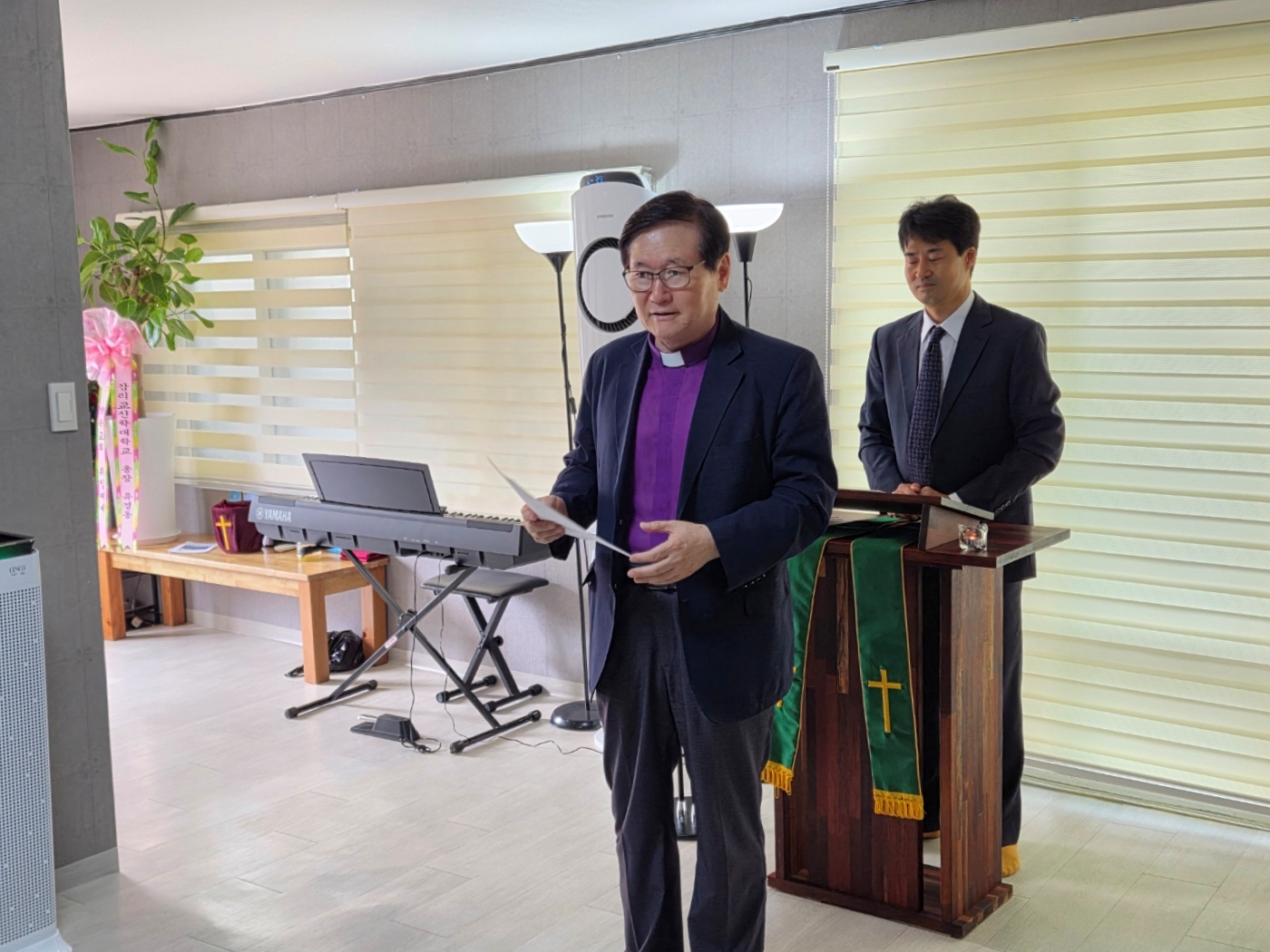 이어 다시 만나 기쁘다며 거듭 반가움을 전하면서 김덕영 전도사의 ‘힘’ 있는 설교에 은혜 받았다고 감사의 마음을 표현했다. 그리고 지역상황에 관해 김덕영 전도사의 설명을 들으면서 열악한 환경임을 새삼 느꼈다며 영적으로 혼잡한 지역 상황에서 이단세력과 영적싸움을 벌이며 복음 전파를 위해 수고하는 헌신에 위로와 격려를 드린다고 전했다. 계속해서 “여러분의 기도와 애씀이 개체교회를 넘어 감리교회 전체를 세워가는 일이다.”라고 강조한 후 기도와 응원에 어긋나지 않도록 주어진 책무를 꿋꿋이 해 나가겠다고 힘주어 말했다.