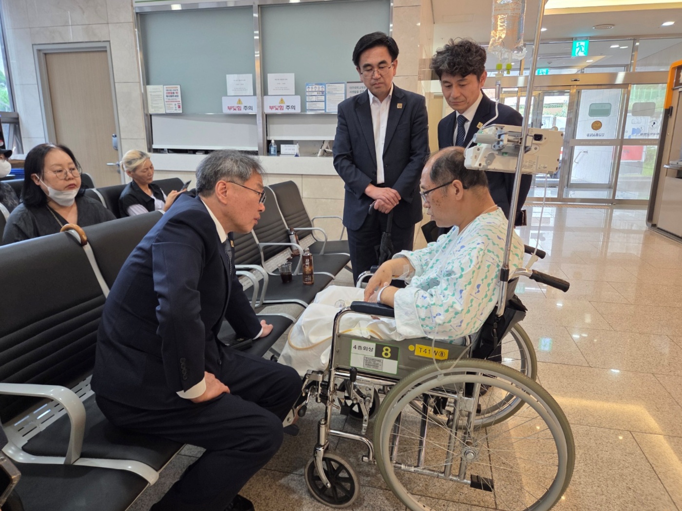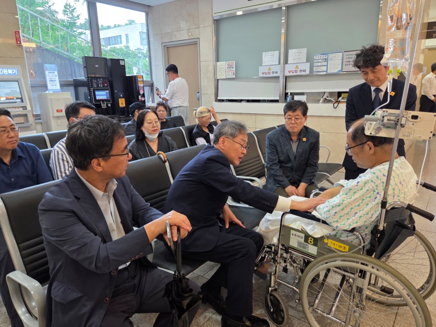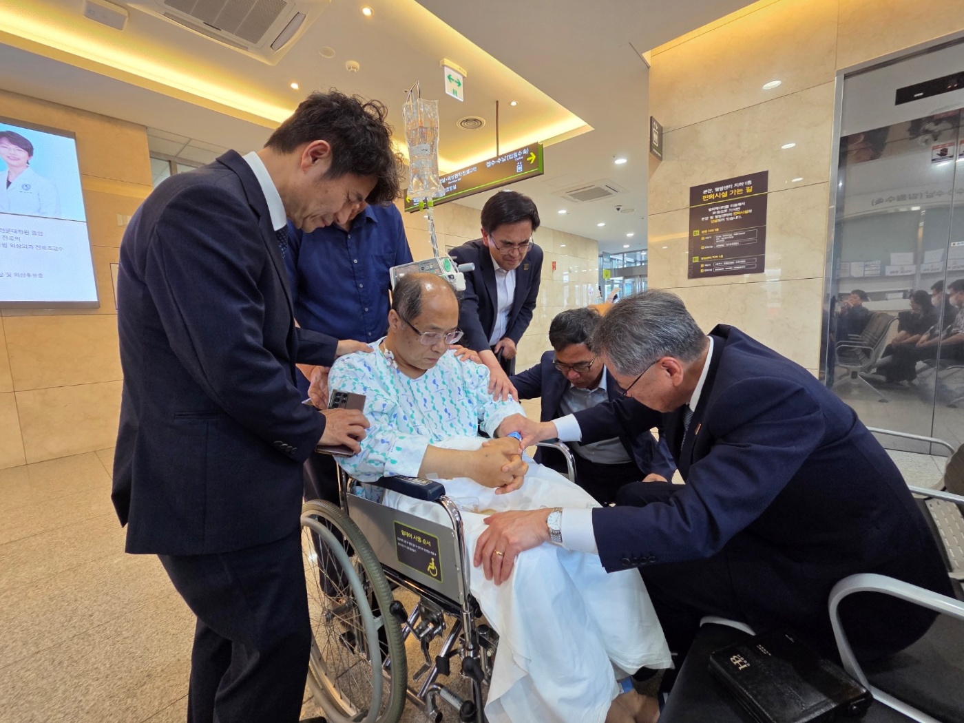 김정석 감독회장은 6월 20일(금) 오후 1시 20분 경 수원 아주대학병원을 방문해 교통사고로 입원해있는 김영곤 목사를 만나 위로하고 기도로 격려했다.