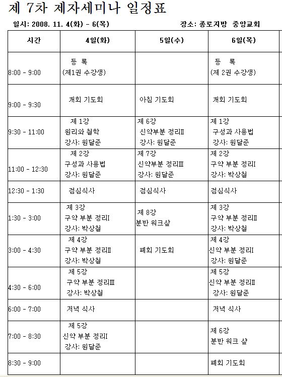 제 7차 <제자> 지도자 교육 세미나 -연기되었습니다.