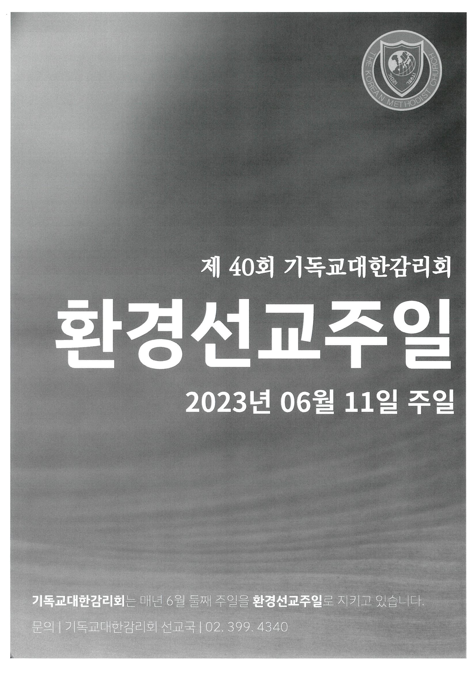 2023년 감리회 환경선교주일 자료집을 첨부 파일로 올려드립니다. 환경주일 예배(설교와 기도문 등) 자료는 링크를 걸어드린 기독교환경운동연대 자료집을 참고하시기 바랍니다. 기독교환경운동연대 2023년 환경 주일 자료집 https://url.kr/47inxr 첨부파일 64759fe3887833836231.jpg 64759fb0f32c92982958.png 기독교대한감리회_2023-환경선교-주일-자료집.pdf 기독교대한감리회_2023-환경선교-주일-자료집.pdf