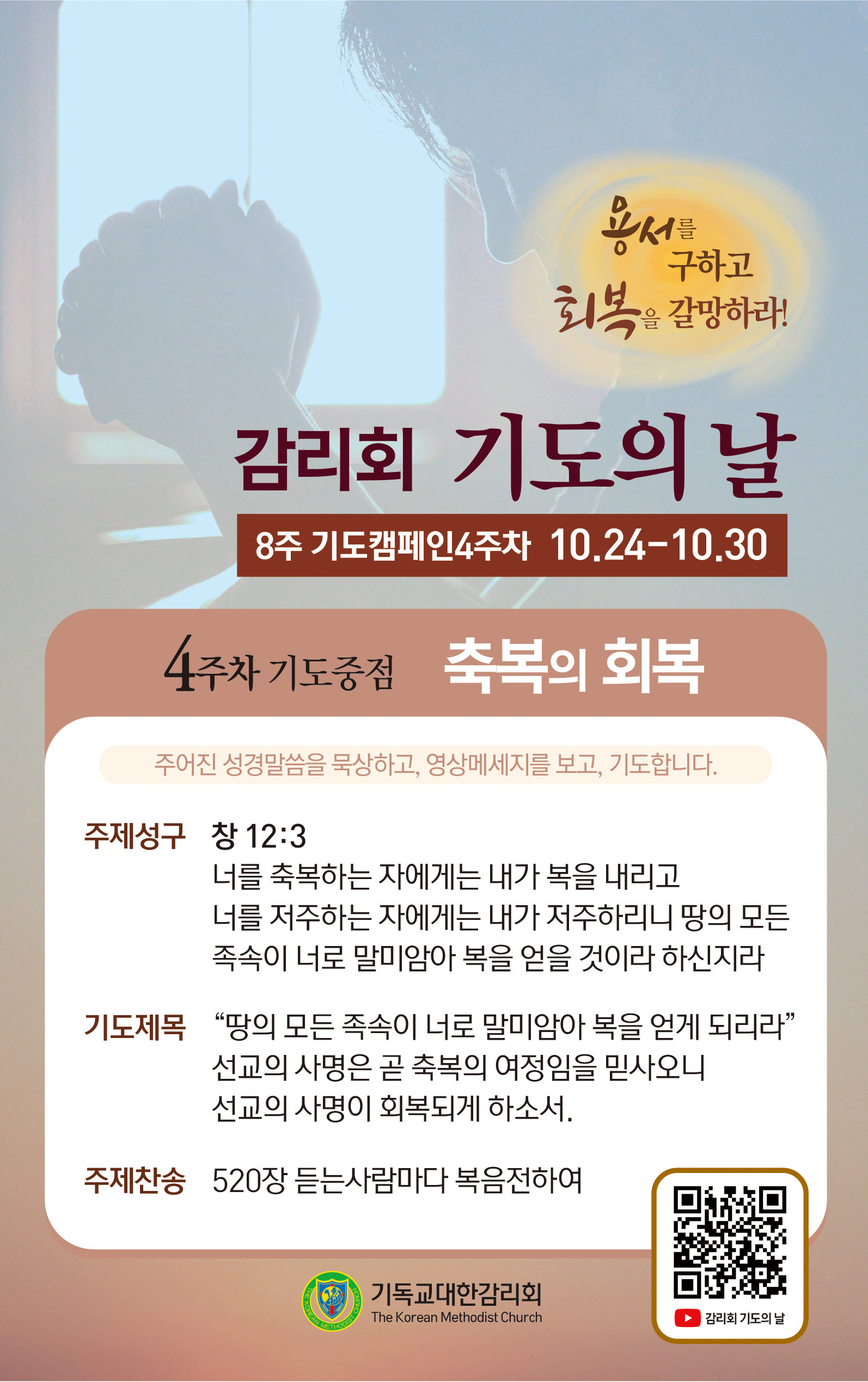 - 현재 한국교회 및 감리회의 당면과제인 교회회복, 선교회복, 다음세대회복을 중심기도제목으로 삼고 감독회장을 중심으로 감리회의 역량을 모으는 기도운동.