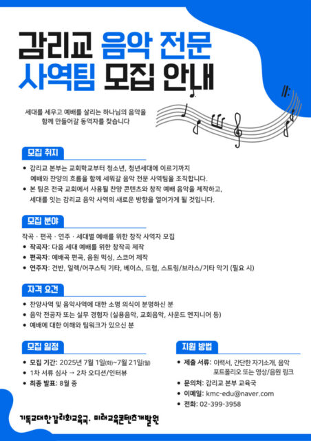 [교육] 감리교 음악 전문 사역팀 모집 안내