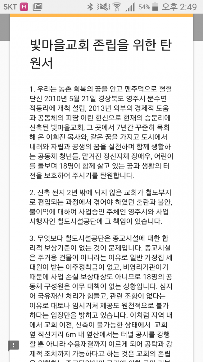 빛마을교회 존립을 위한 탄원에 서명해주세요. 온라인 서명주소는 https://goo.gl/Lz7YgO 입니다!!감사드립니다~! 다시는이런 억울한 눈물흘리는 이들이 없기를.. 기도합니다❤ 행정기획실 첨부파일 Screenshot_2017-01-13-14-49-57.png