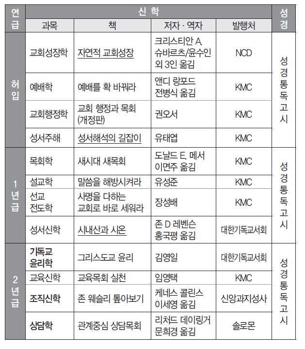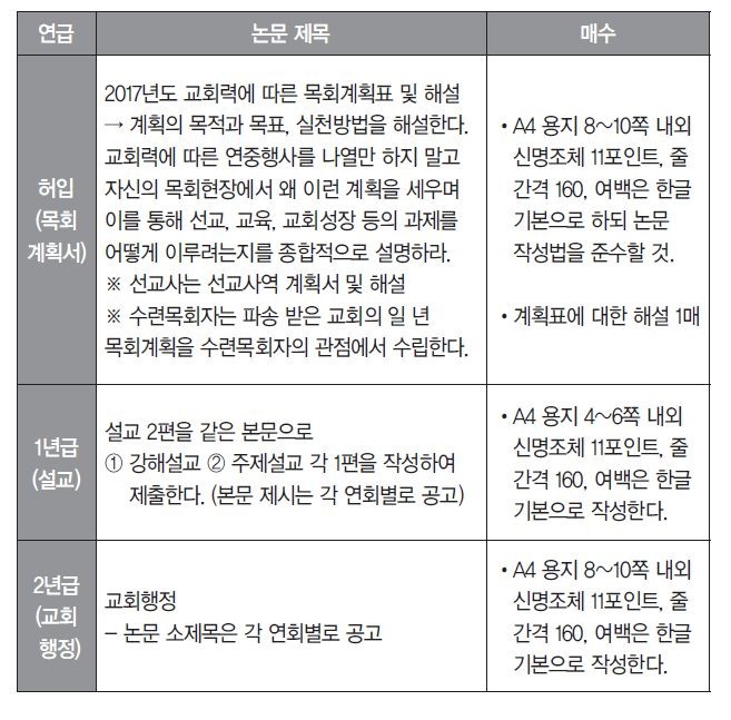 • 1~2년급의 모든 논문은 본인의 목회현장에서 적용된 것