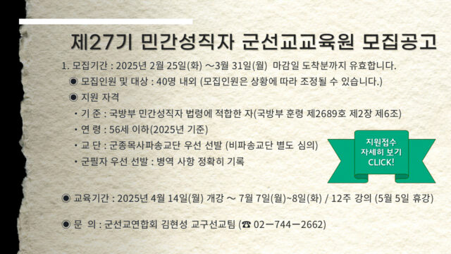 [군선교] 2025년 제27기 민간성직자 군선교교육원 모집공고