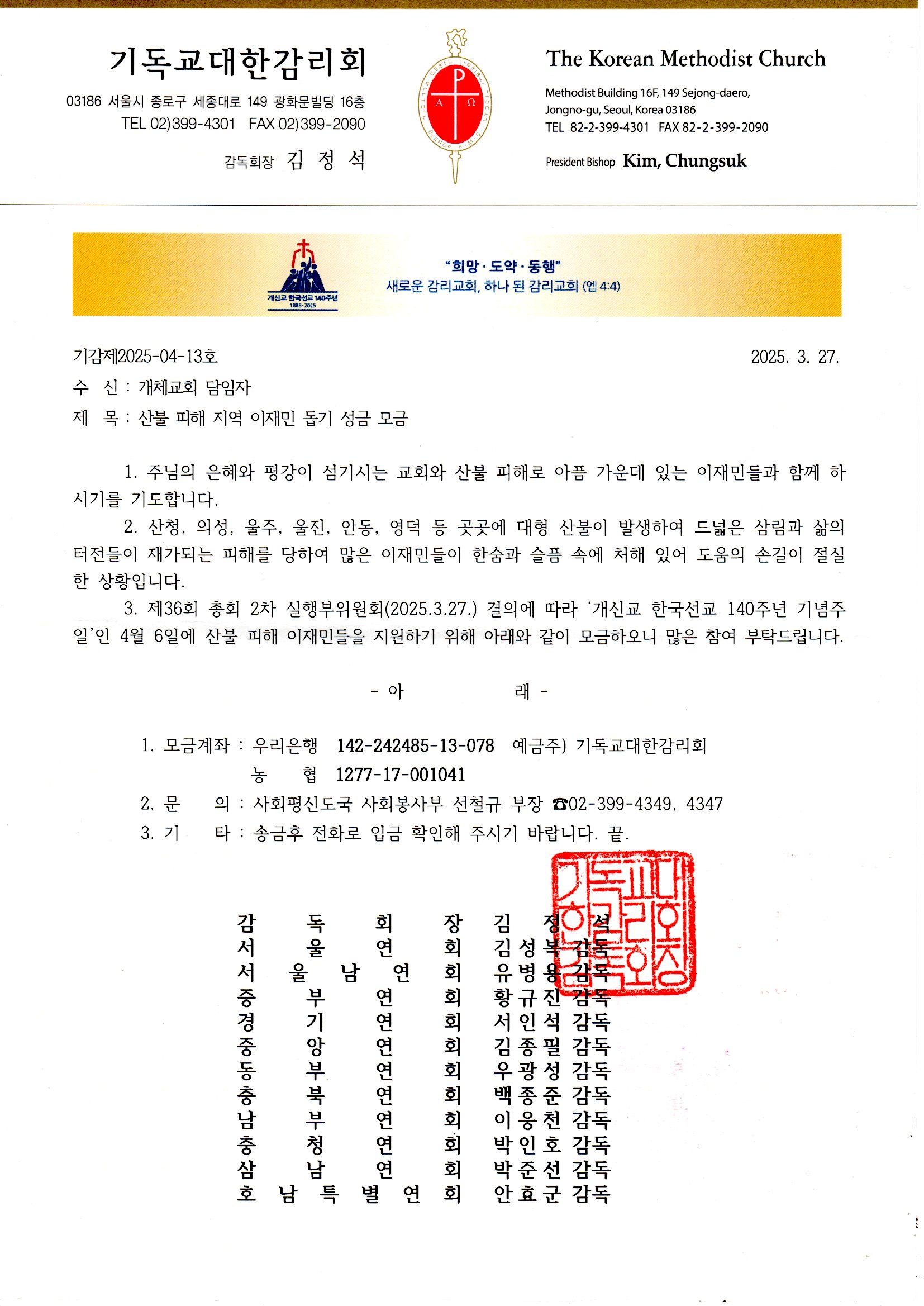 1. 모금계좌 : 예금주) (재)기독교대한감리회유지재단