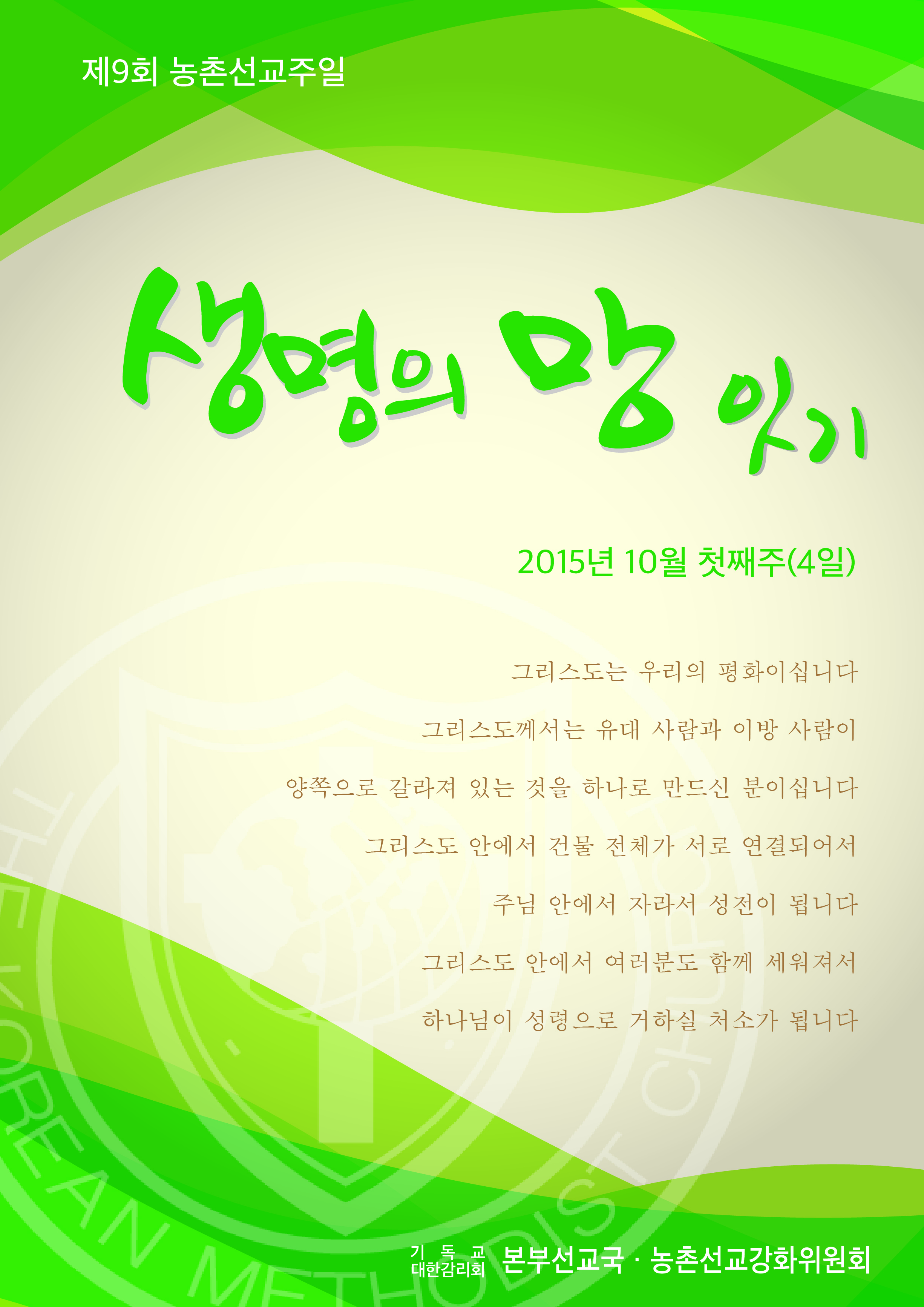 10월 첫째주(4일)를 제9회 농촌선교주일로 지킵시다.