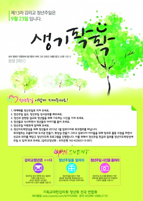 청년지도력양성에 쓰일 수 있게 보내주세요.(감리교청년회 : 우리은행 142 - 422823 - 13 - 001)