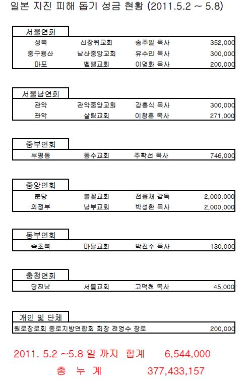 일본 지진 피해돕기 성금 영수기 6 (2011.5.2-8)