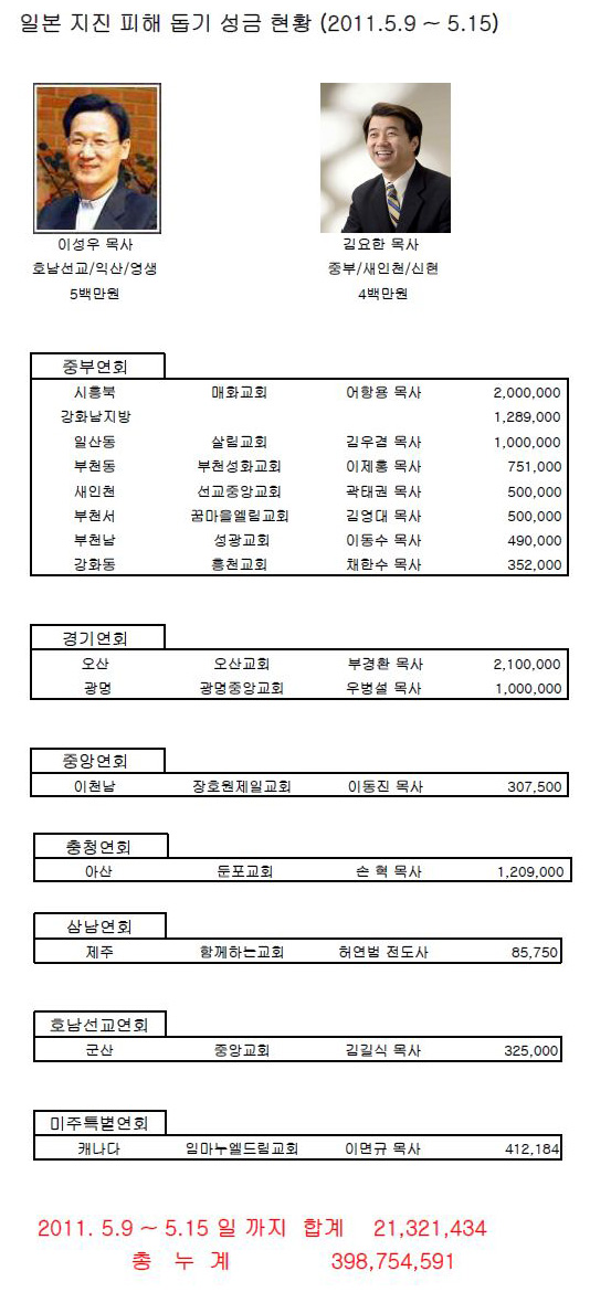 일본 지진 피해돕기 성금 영수기 7 (2011.5.9-15)