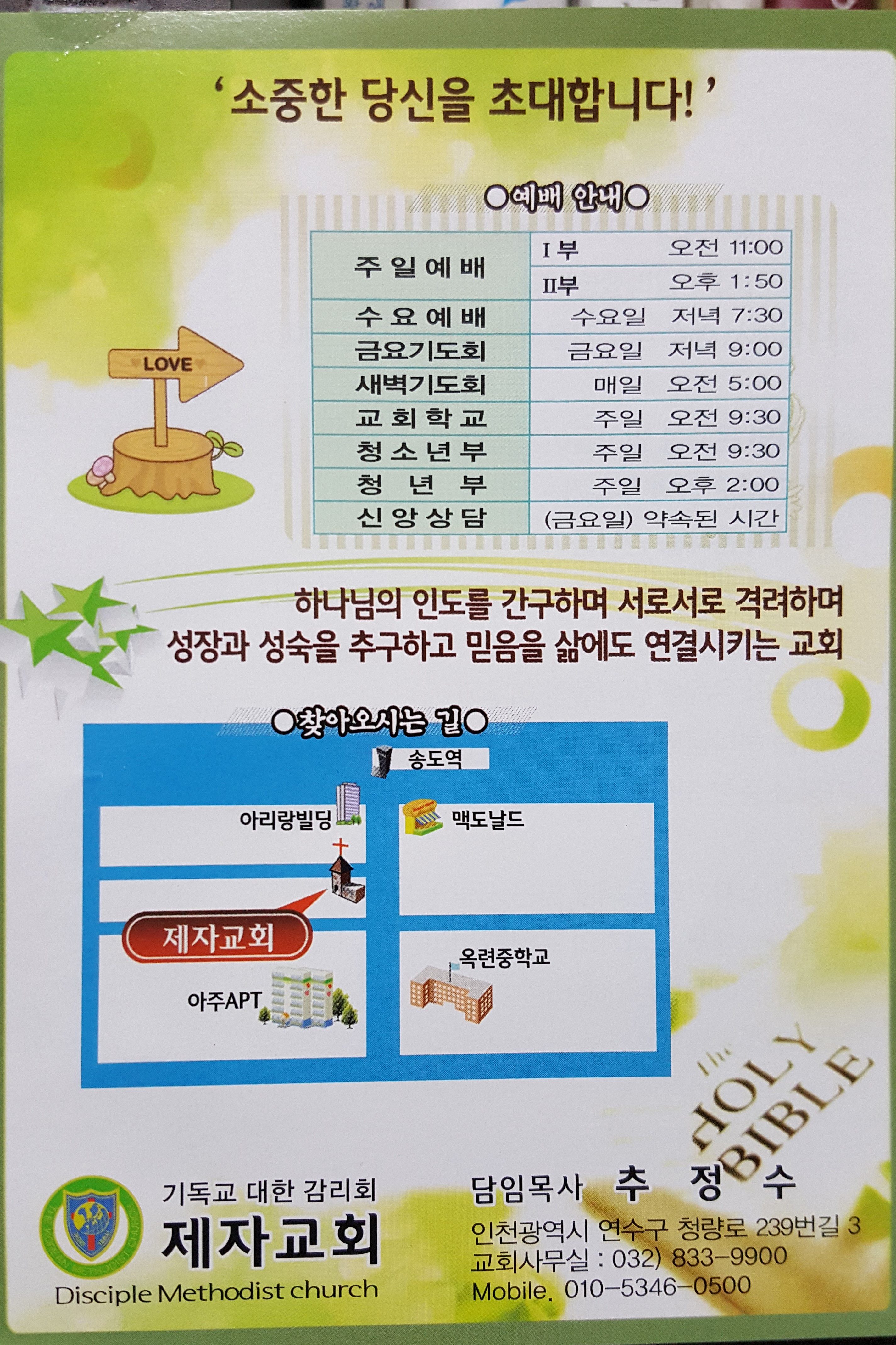 예배시간과 글귀는 첨부한 파일을 참조하셔서