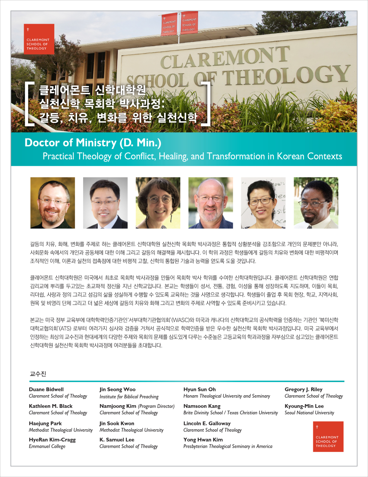 클레어몬트 신학대학원 실천신학 목회학 박사 과정에 관심 있는 분들의 많은 지원을 부탁드립니다.