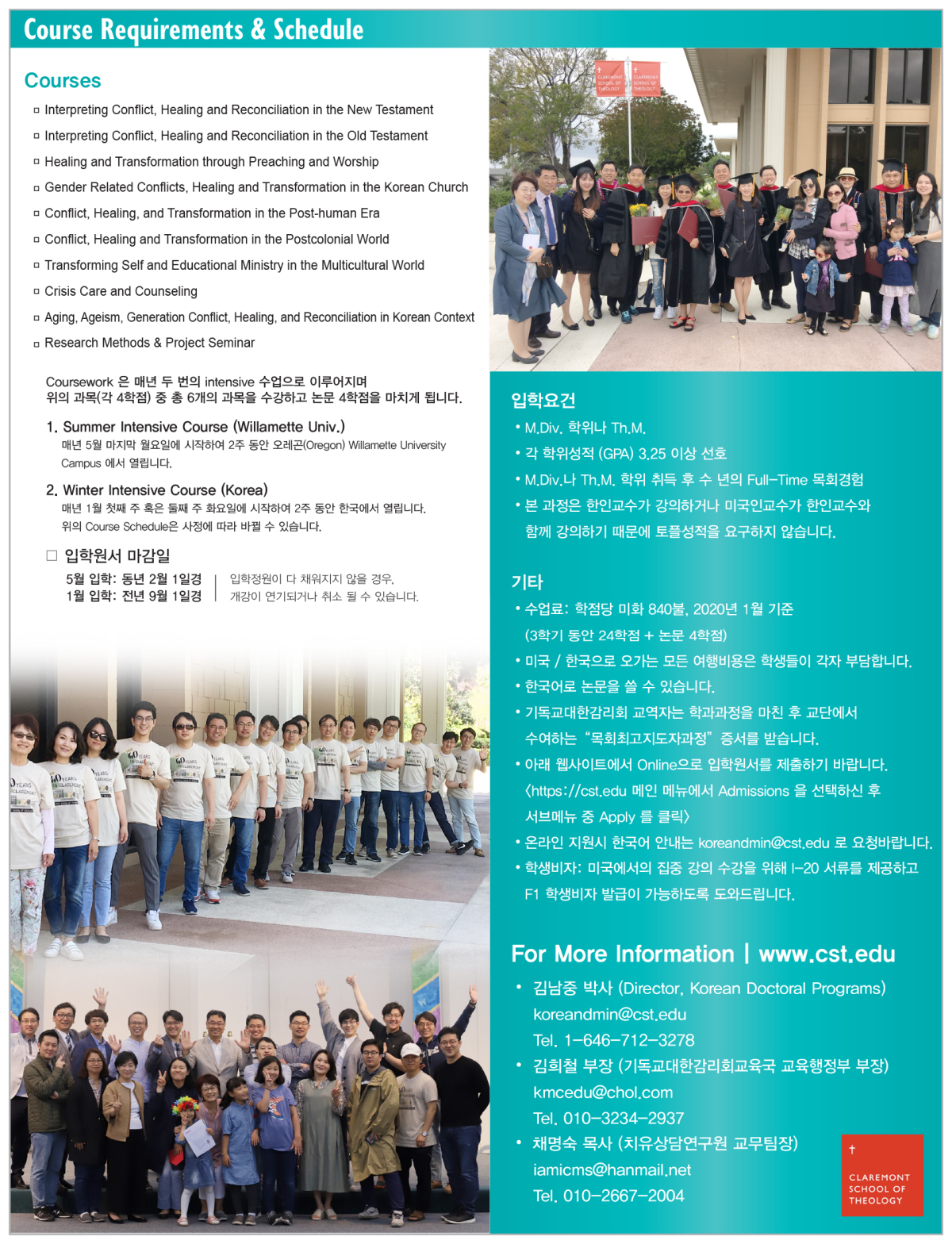 김남중 교수 (박사원 원장, 실천신학 교수) 646-712-3278 koreandmin@cst.edu