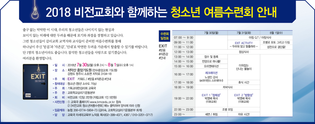 2018 비전교회와 함께하는 청소년 여름수련회 안내