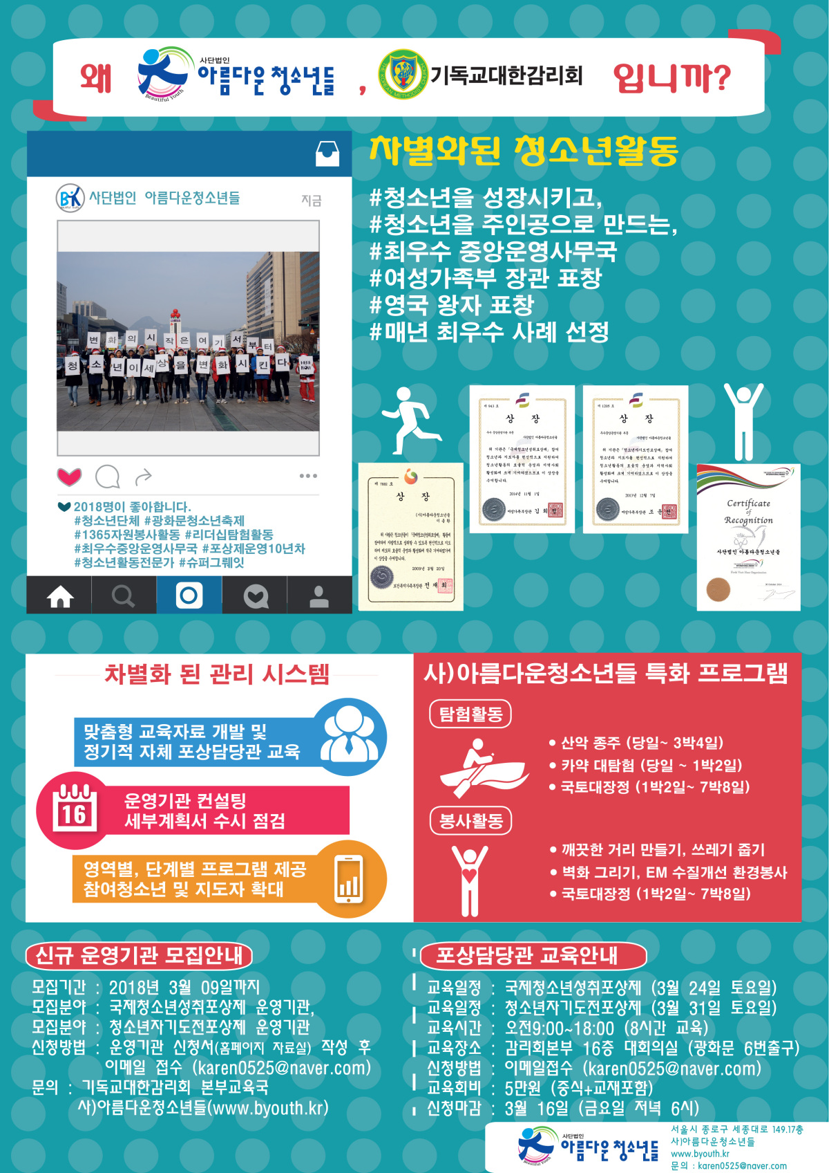 2018년도 청소년 포상제 운영할 교회 모집 안내 및 직무연수 안내입니다!