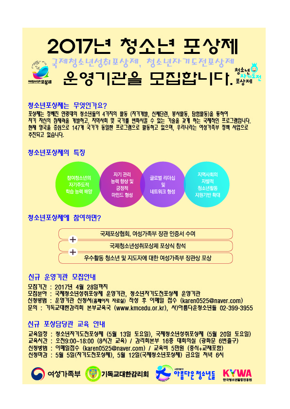 청소년포상제 운영기관 모집 및 포상담당관 직무교육 안내 (5월)