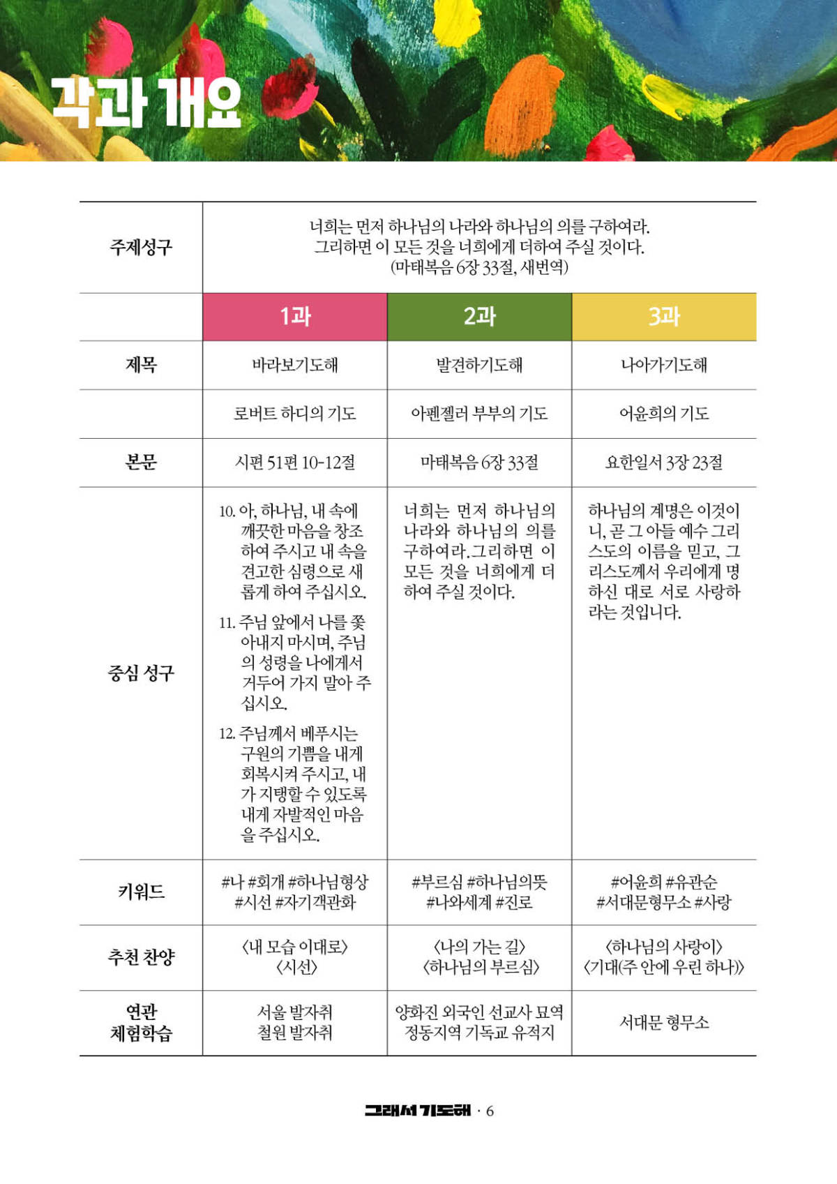 * 주제성구 : 마태복음 6장 33절 (새번역)