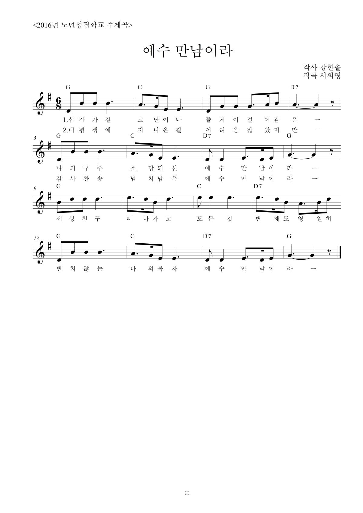 2016 노년성경학교 주제곡 '예수 만남이라' 악보, 동영상입니다.