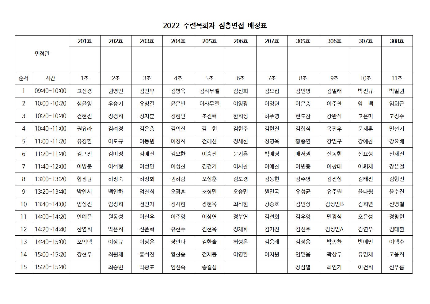 10. 면접표 : 별첨 참조 / 배정표가 변경되었습니다. 참조하셔서 면접에 빠짐없이 참석바랍니다.