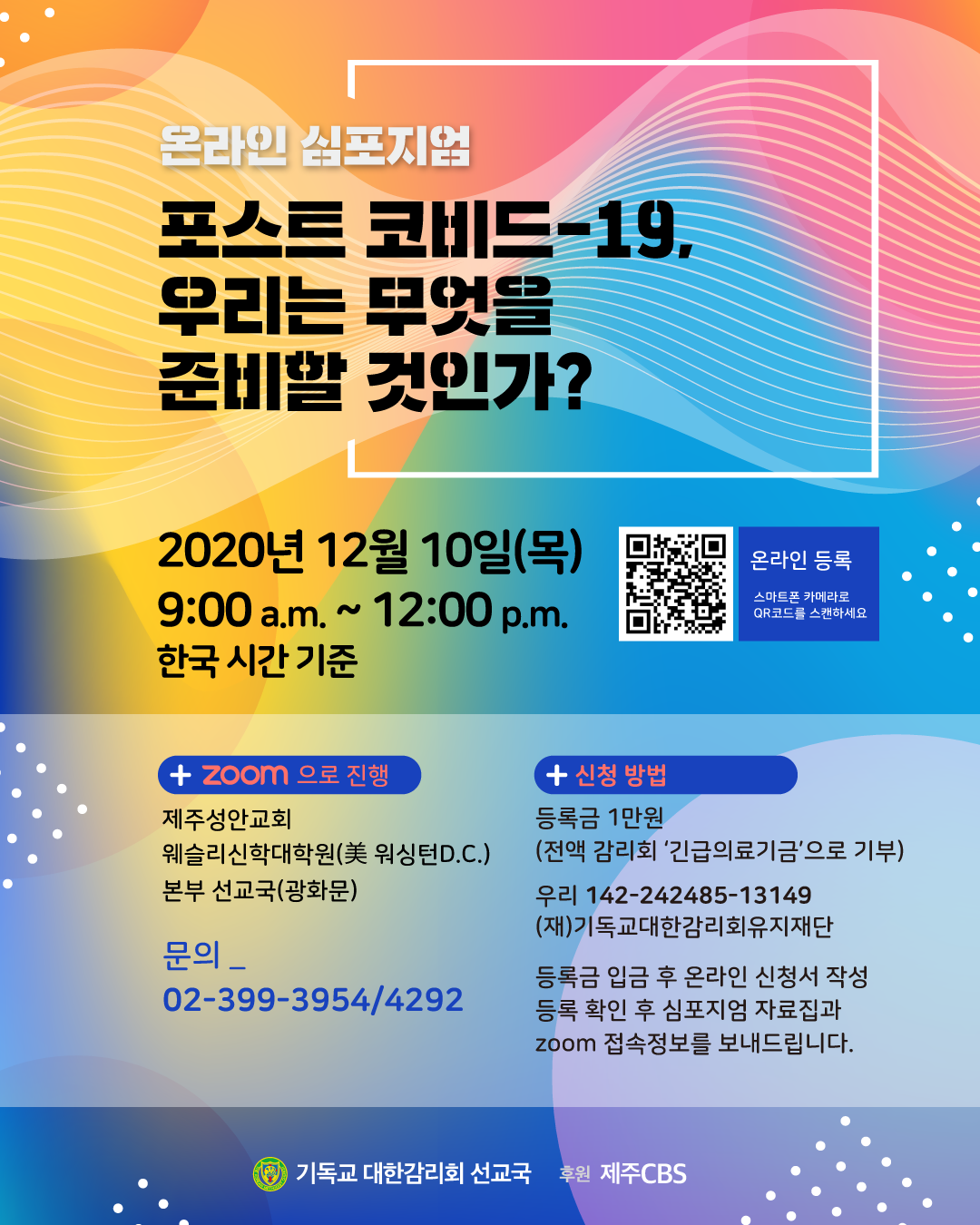 등록금 : 1만원 (전액 감리회 '긴급의료기금'으로 기부합니다.)