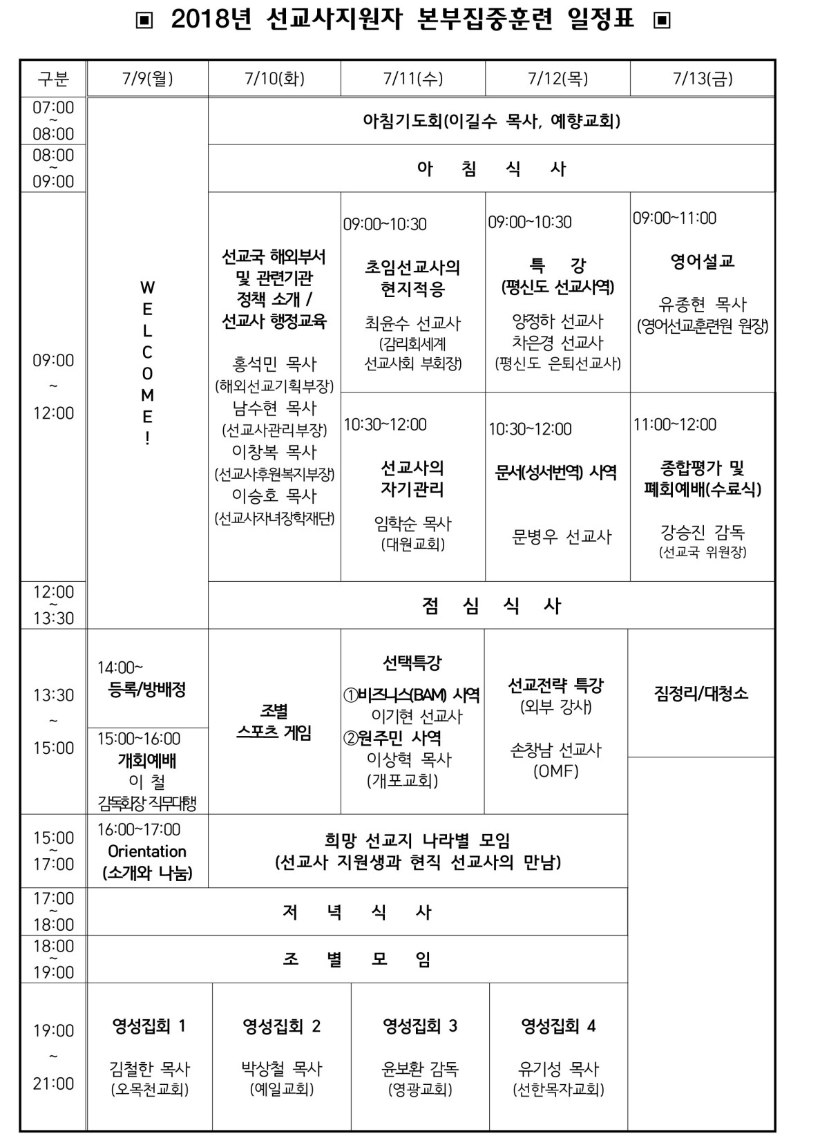 2018년 선교사 지원자 본부집중훈련 안내해드립니다.