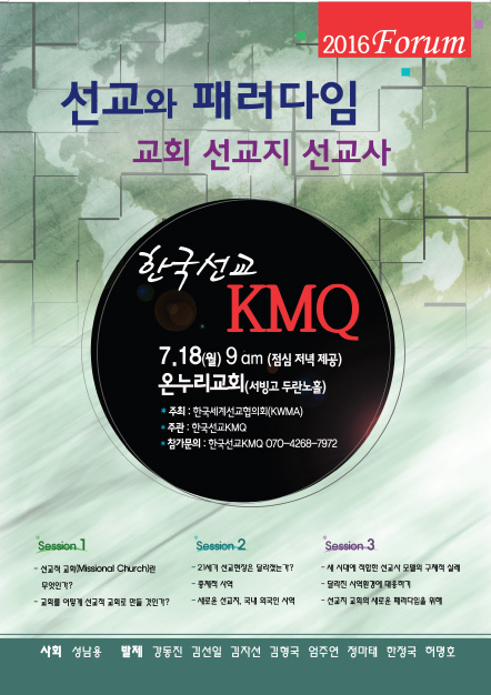 2016 KMQ포럼 : 선교와 패러다임_교회 선교지 선교사(등록비 수정)