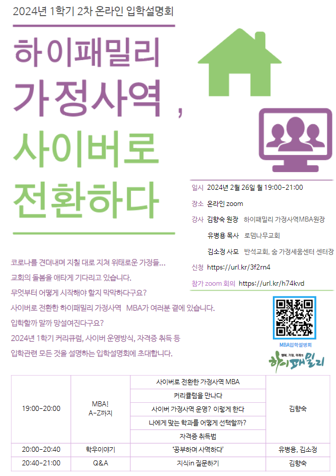 하이패밀리 가정사역 MBA 온라인 교육 입학설명회 소개의 건