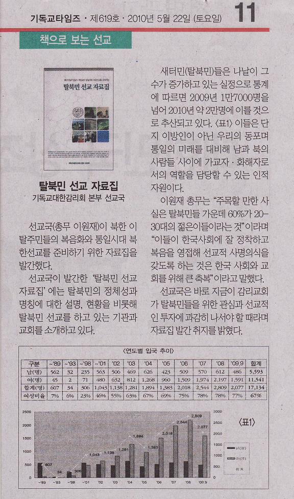 [2010년기사] 탈북민 선교자료집 발간 기사
