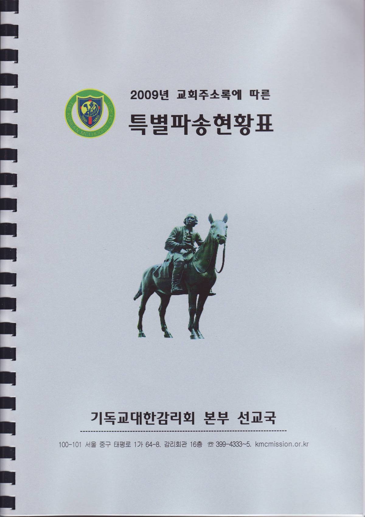 9월 1일(화)에 2009년도 교회주소록에 따른 특별파송현황을 정리한 자료집을 만들었다.
