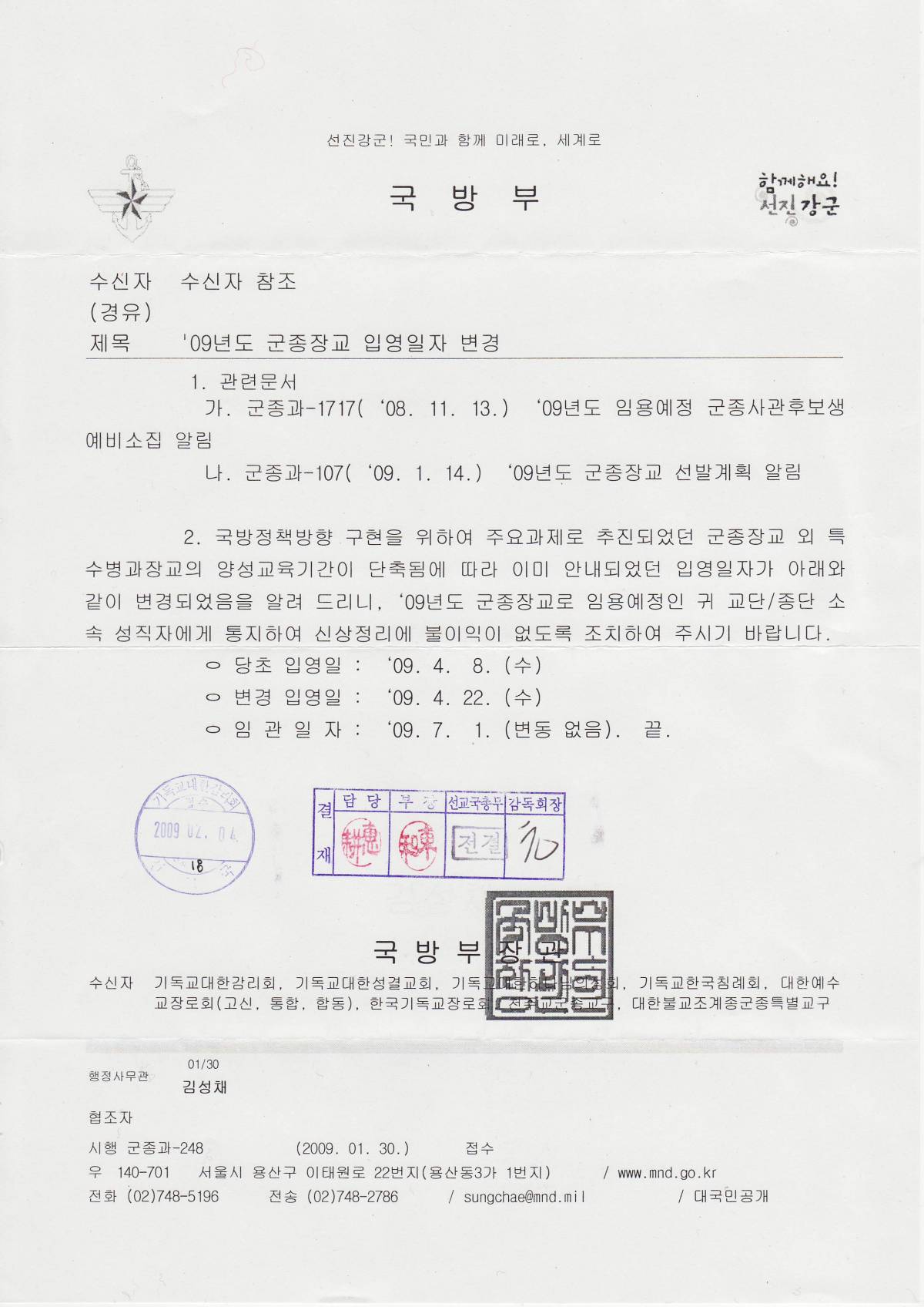 2009년 군종사관후보생 관련자료 / 교리와장정