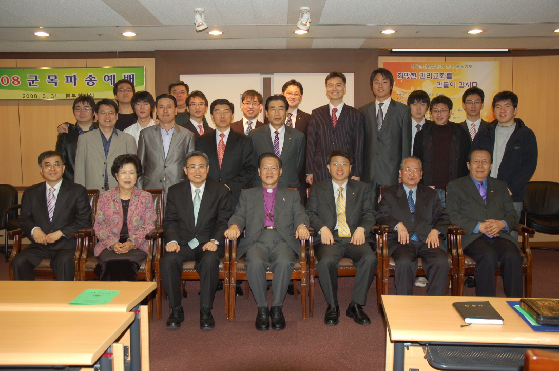3/31(월) 11:00 본부 회의실에서 예배를 드렸습니다.5명의 신임군목이 파송을 받았으며 감독회장님이 설교를 해 주셨습니다.입대일은 4월 10일이고 임관자는 박광현, 김경식, 박광훈, 김영중, 손주범입니다. 첨부파일 71.jpg 72.jpg