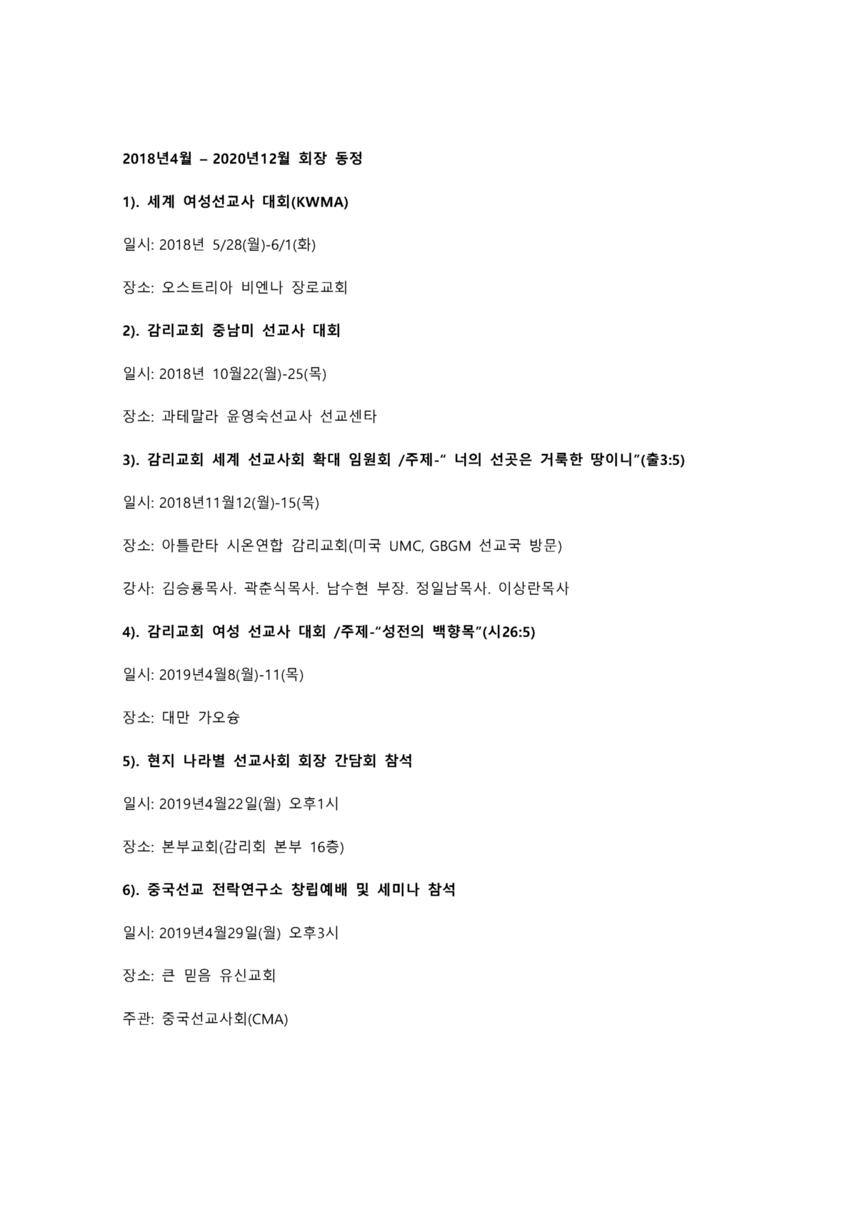 감리교회세계선교사회 회장(2019-2021) 보고서