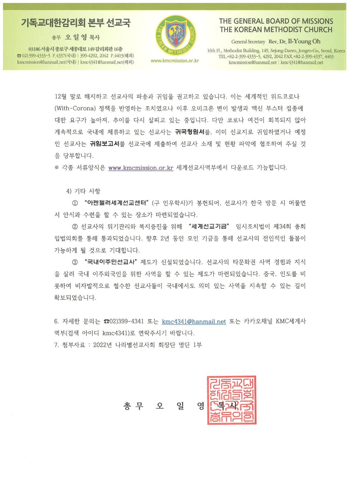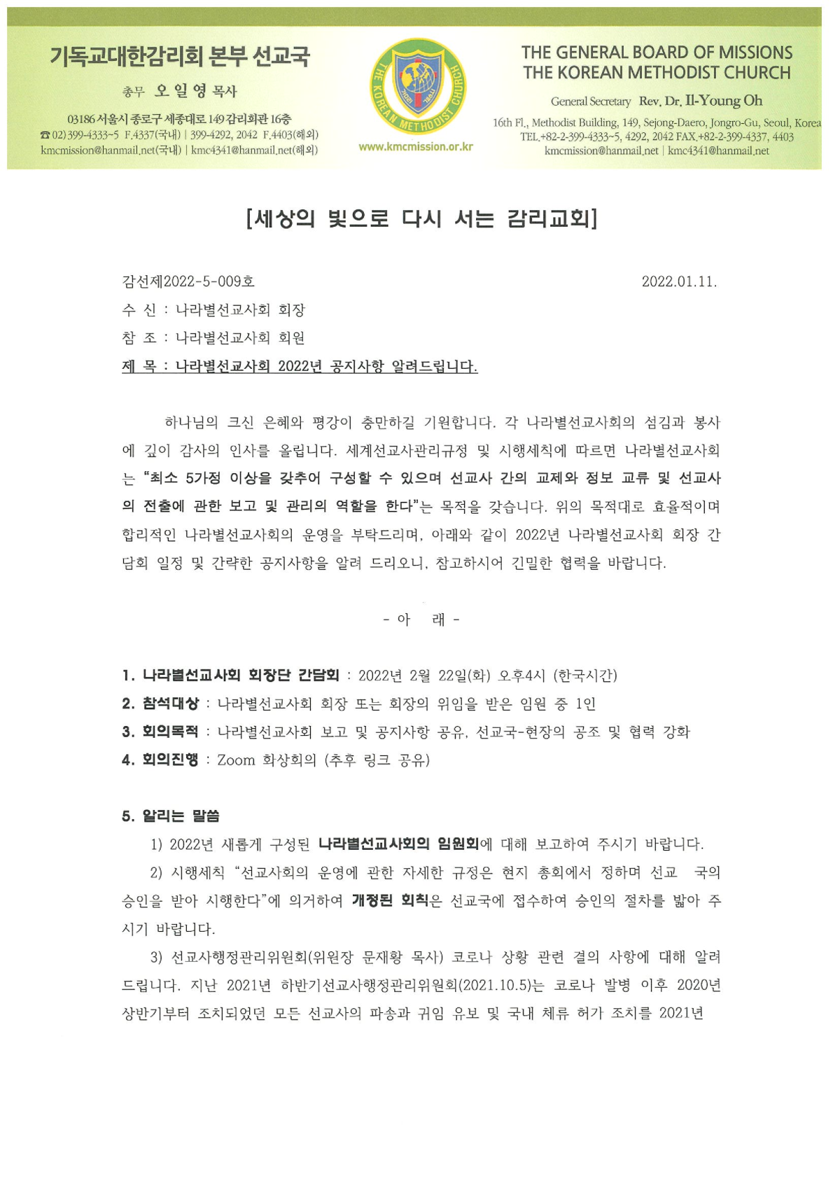 나라별선교사회 2022년 공지사항 알려드립니다.