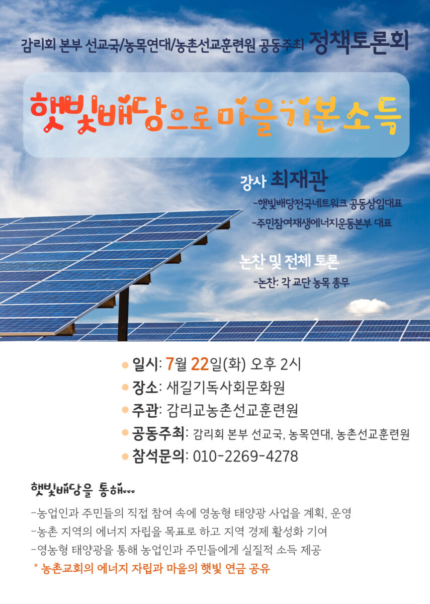 [사회농어촌환경부] "햇빛배당으로 마을 기본소득" 정책토론회 안내