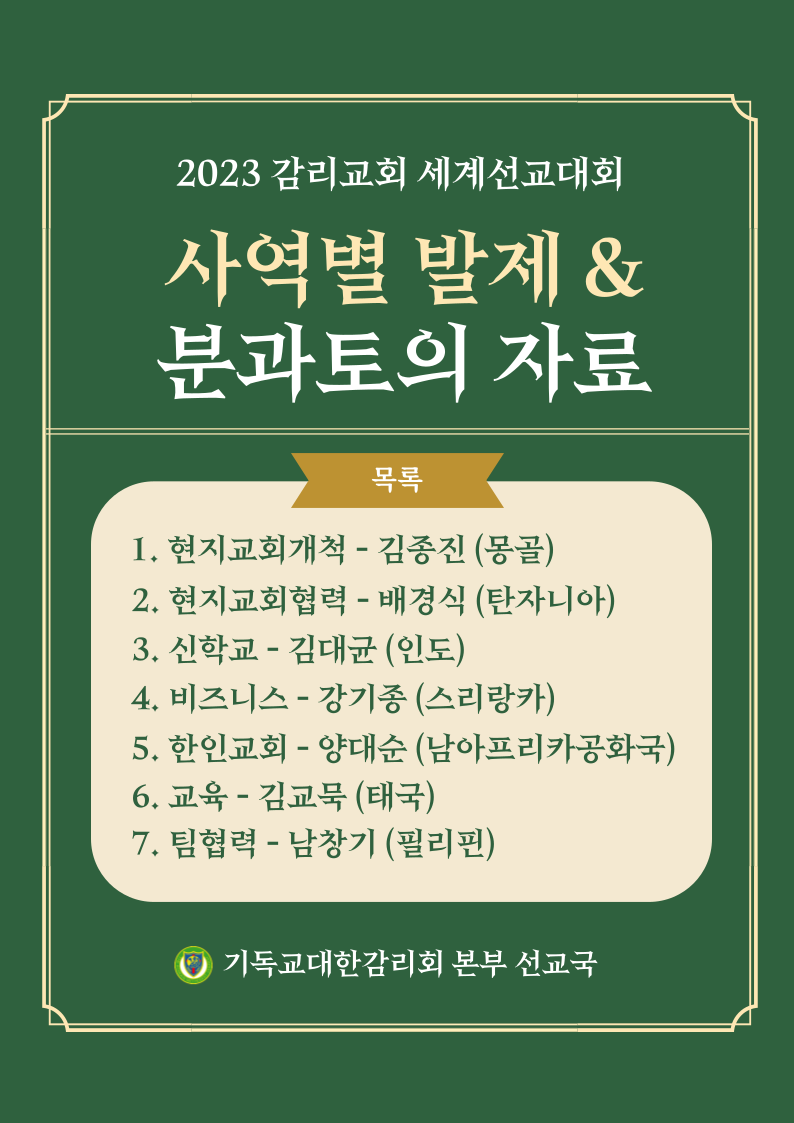 2023 감리교회 세계선교대회 사역별 발제&분과토의 자료집