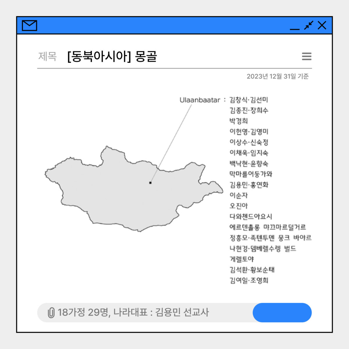 4. 2024년 10월 몽골감리교목회자협회를 발족함으로 향후 몽골감리교선교사회와 합력하여 선을 이루어 몽골에 하나님나라를 이루게 하시길