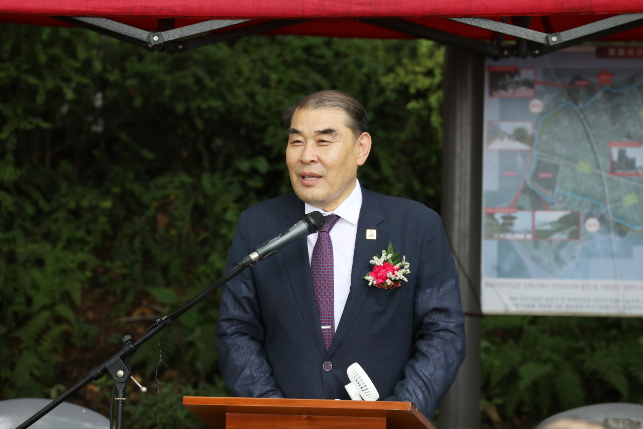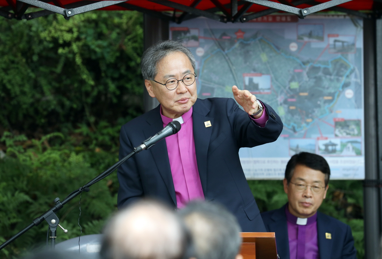본문 이야기로 들어가 아라우나 타작마당에 세워진 제단에 관해 설명한 김정석 감독회장은 ‘평화통일기도의집’이 하나님의 평화가 있는, 하나님의 뜻이 이루어지는 아름다운 곳이 되기를 소망한다고 전했다. 하나님의 교회는 누군가의 희생과 헌신을 필요로 한다며 사회평신도국과 중부연회의 헌신으로 세우지는 ‘기도의집’이 하나님께서 주시는 평화로 가득한 곳이 되길 기원한다고 덧붙였다. 계속해서 다윗이 아라우나 타작마당에 세운 제단은 ‘화목제’였다며 하나님 앞에 철저하게 회개하는 모습이 ‘기도의집’에 가득하길 바란다고 전했다. 회개는 마음의 방향을 자신에게서 하나님께로 바꾸는 것이라며 “내 죄를 회개하고 민족의 아픔과 현실 앞에 마음을 돌이켜 하나님께로 향하는 기도의 소리가 울려 퍼질 때 하나님께서 주시는 놀라운 평화와 하나 됨의 역사가 일어날 것이고 그것이 곧 하나님의 임재를 경험하는 것이다.”라고 강조했다.