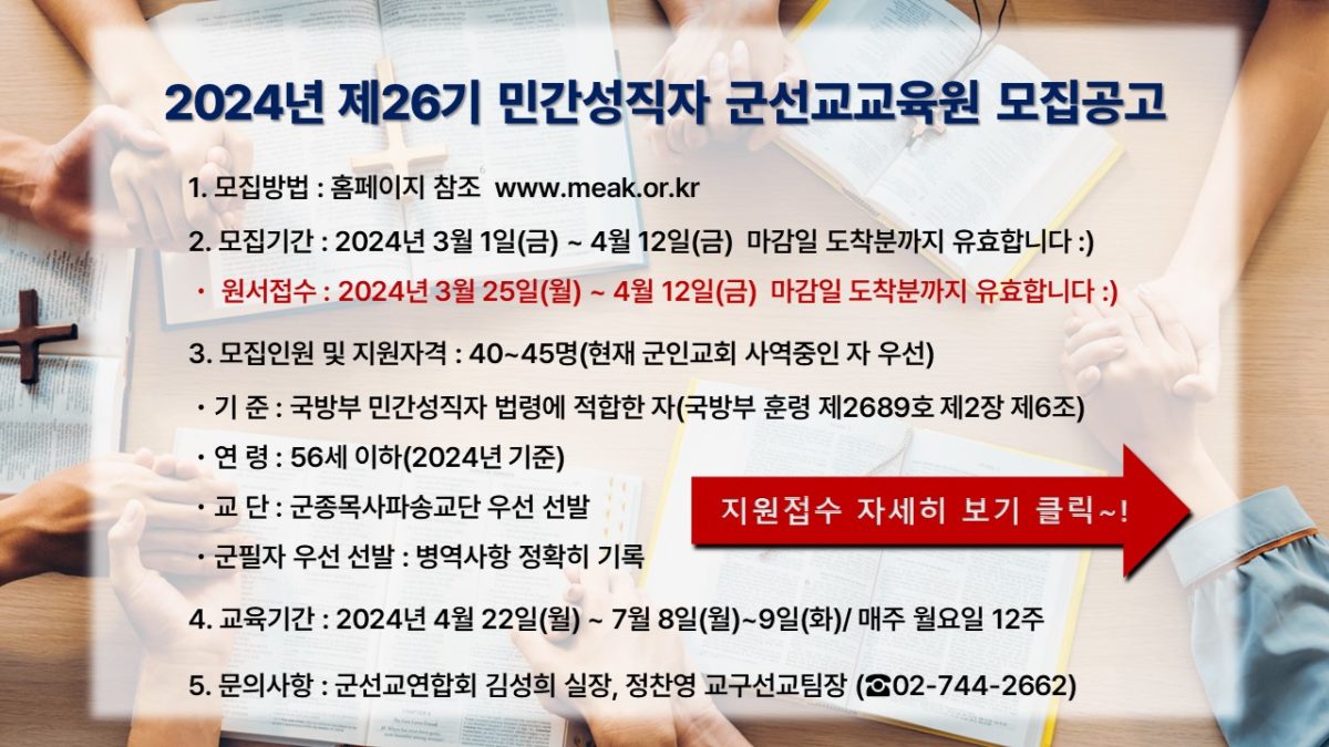 [군선교] 제26기 한국 군선교교육원 교육생 모집 공고