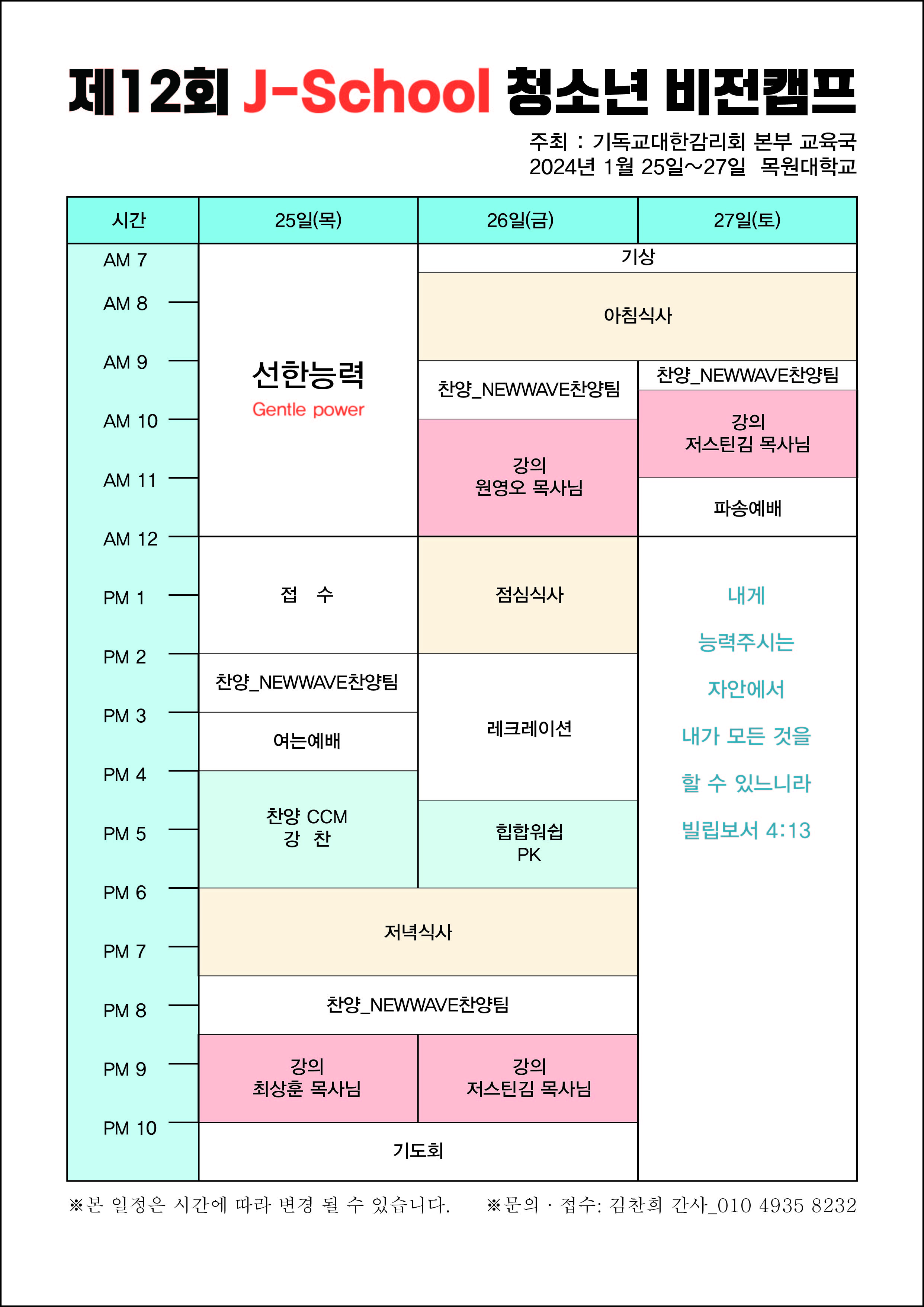 기독교대한감리회 교육국은 다음세대의 영적부흥과 성장을 위해 아래와 같이 ‘J-School(Jesus-School) 청소년비전캠프’를 개최합니다.