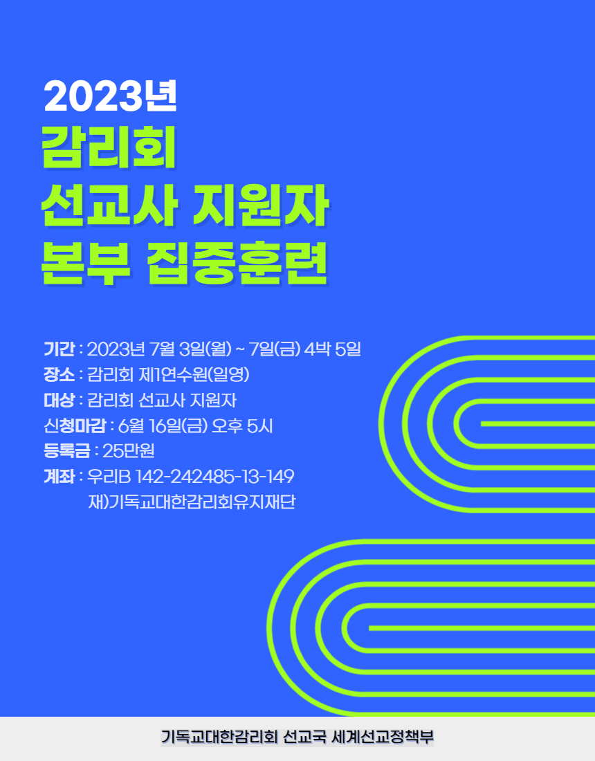 [선교] 2023년 감리회 선교사 지원자 본부집중훈련 공고 및 신청 안내