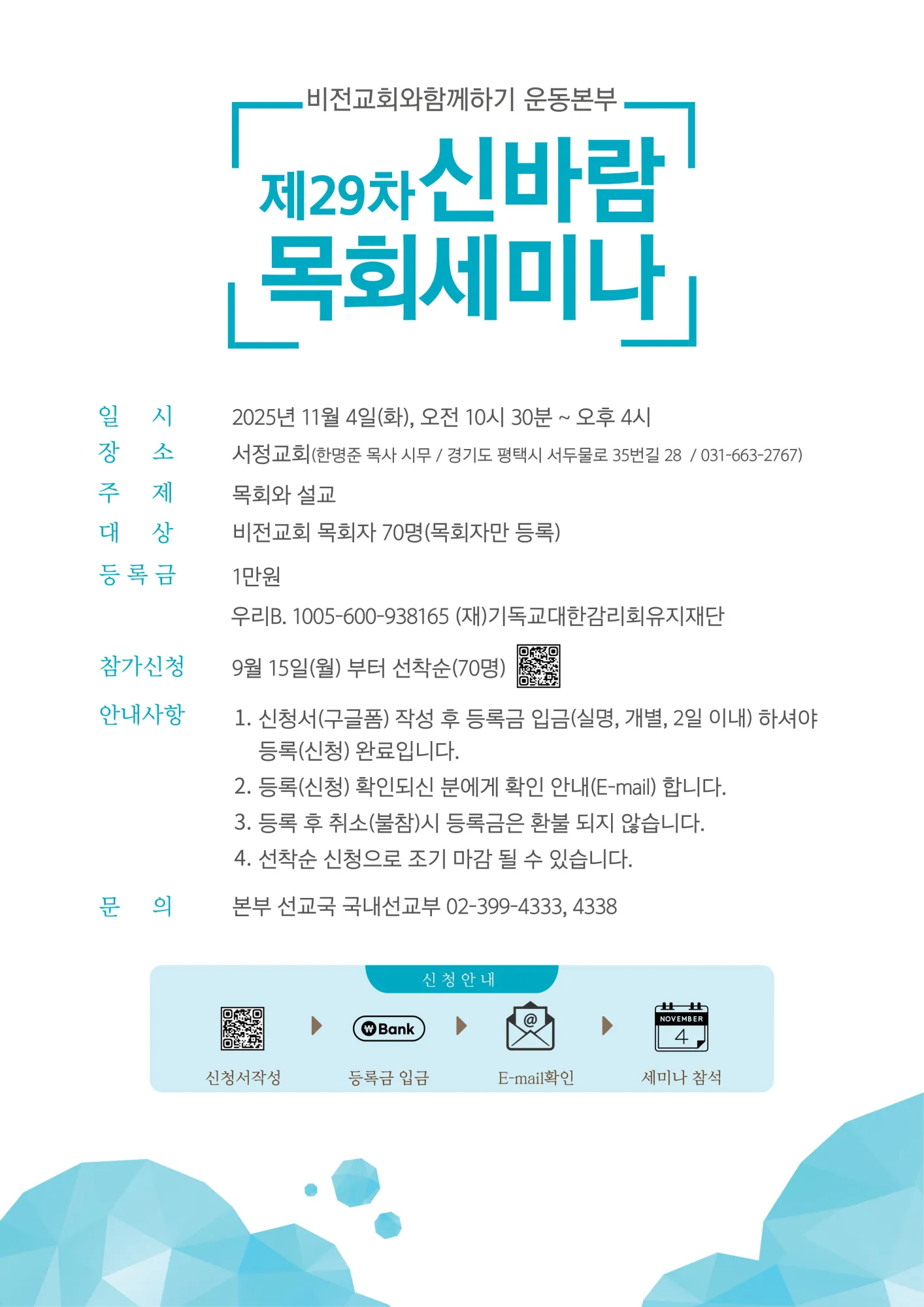 [선교] 제29차 신바람목회세미나 신청 안내 - 마감